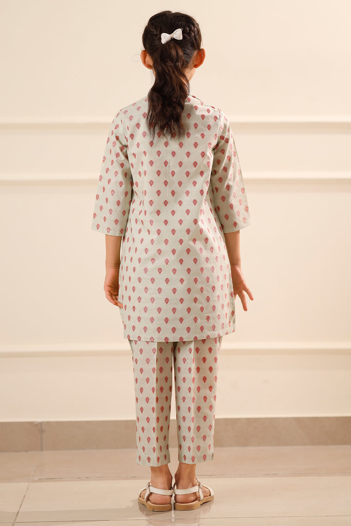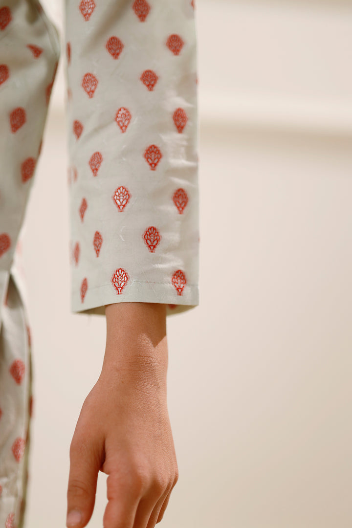 Introducing Saya's Stitched Cotton Jacquard Shirt and Trouser Set for Kids, designed to provide both comfort and style for your little ones. Crafted from premium cotton jacquard fabric, this mint green ensemble offers a soft and breathable experience, making it perfect for casual outings and semi-formal occasions. The elegant textured fabric adds a touch of sophistication to your child's wardrobe.
