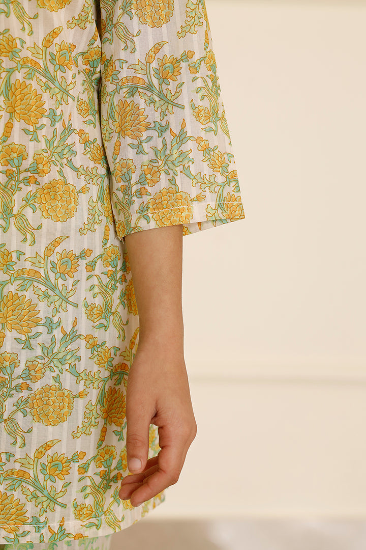 Introducing Saya's Stitched Cotton Viscose Shirt and Trouser Set for Kids, designed to offer both comfort and style for your little ones. Crafted from breathable cotton fabric, this ensemble ensures ease of movement, making it perfect for active children during casual outings or family gatherings. The set features a premium printed cotton shirt paired with matching trousers, both in a vibrant green hue that adds a fresh touch to your child's wardrobe.