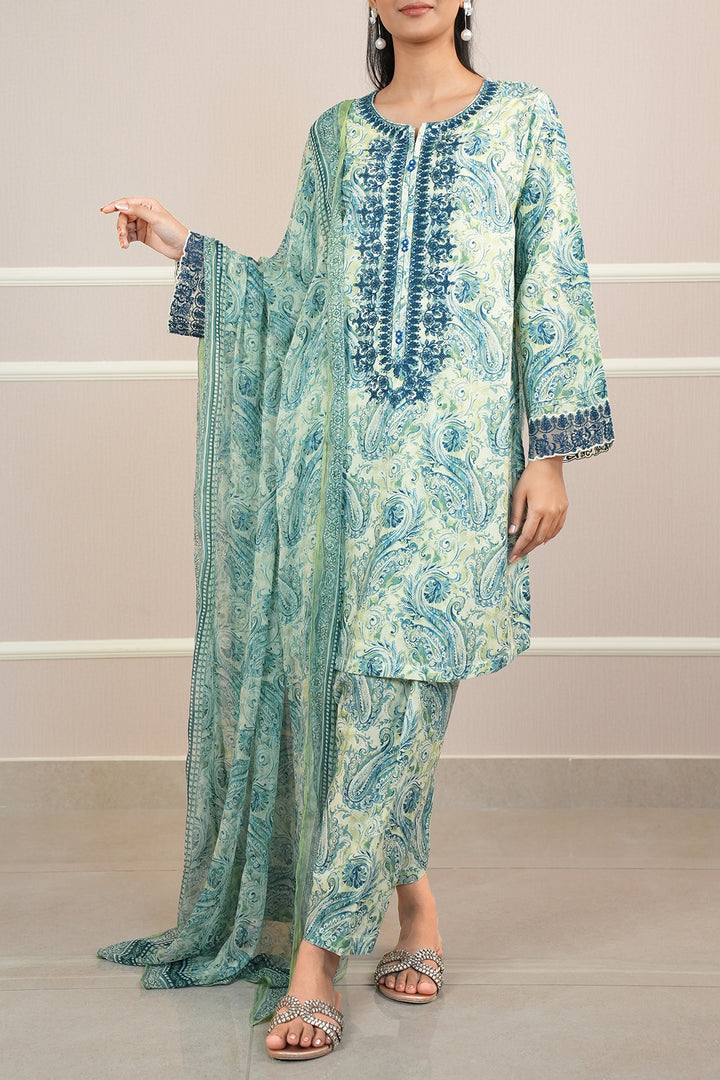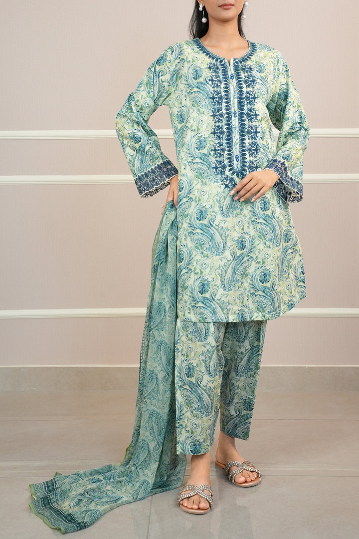 Upgrade your everyday wardrobe with this Stitched Embroidered Lawn Shirt from Saya.pk. Crafted from premium quality lawn, it features delicate embroidery that adds an elegant touch to your look. Lightweight and breathable, it's ideal for day-to-evening wear during warmer months.