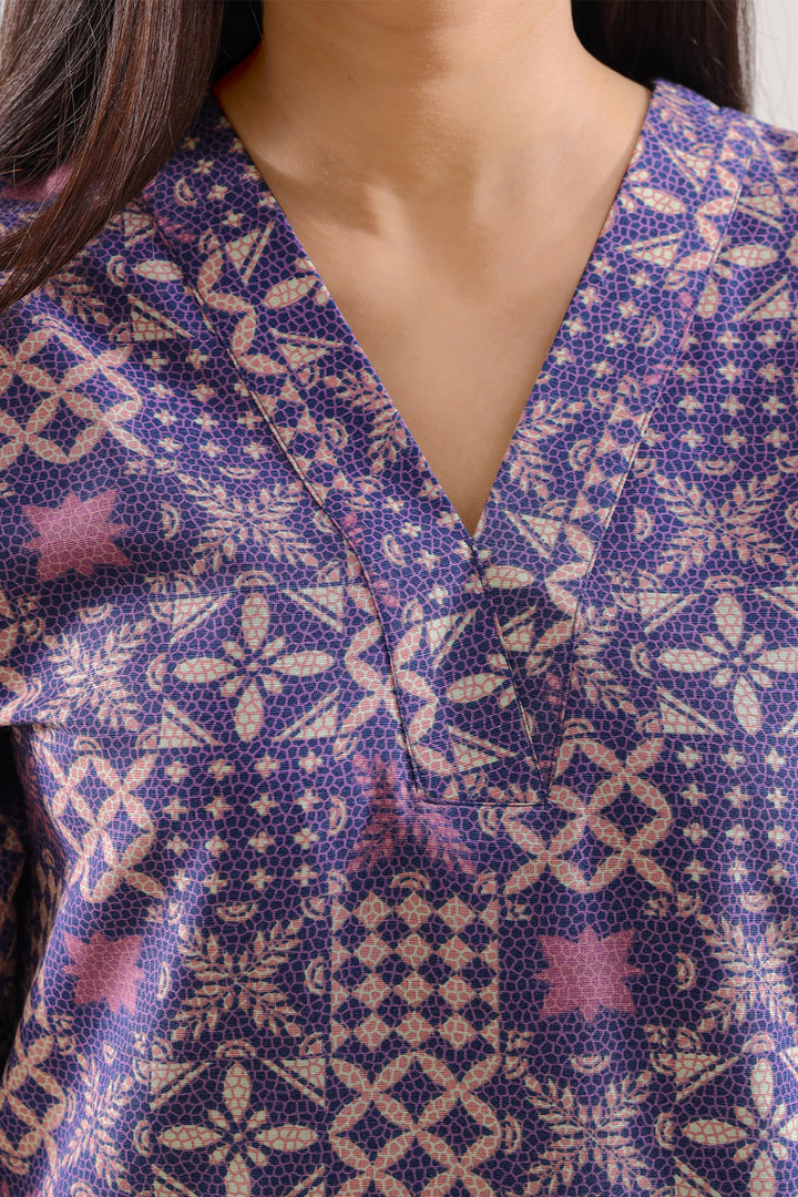 Introducing Saya's Stitched Printed Slub Cotton Shirt, a perfect blend of comfort and style for your winter wardrobe. Crafted from premium Slub Cotton fabric, this purple shirt features an intricate print, making it suitable for both casual and semi-formal occasions. The ready-to-wear design ensures convenience without compromising on elegance.