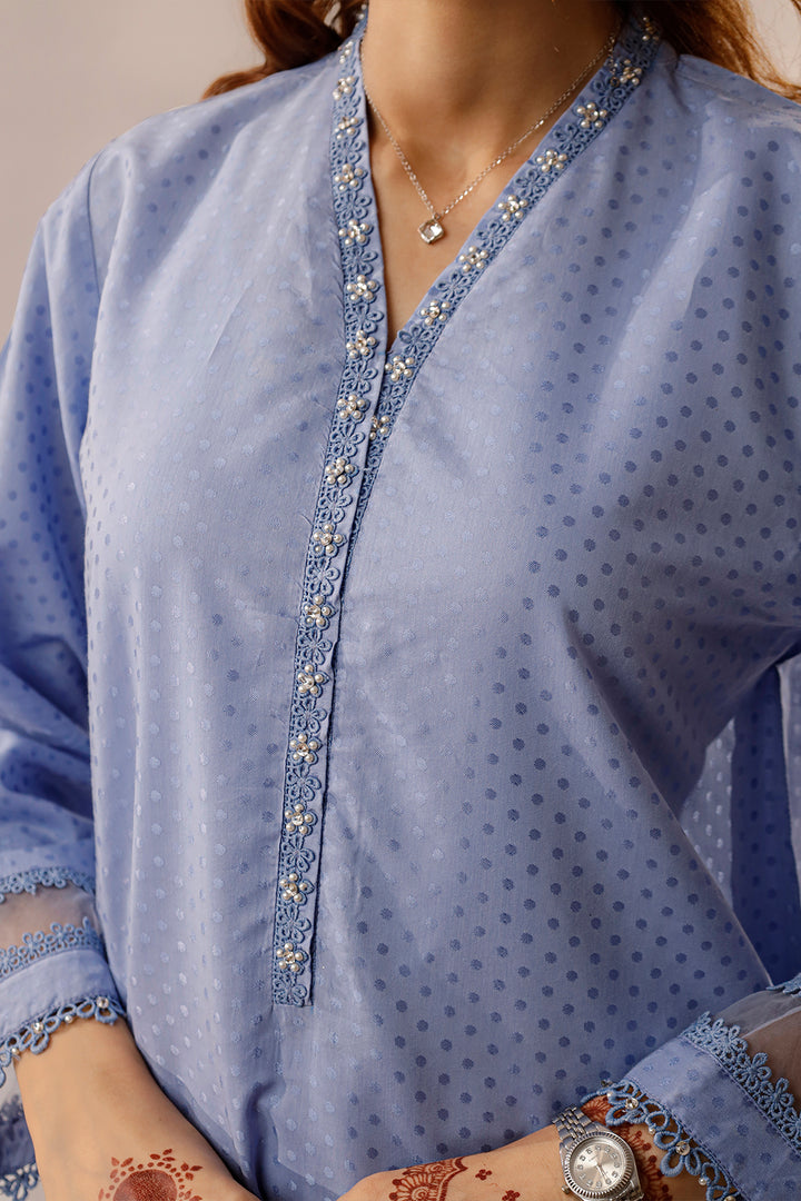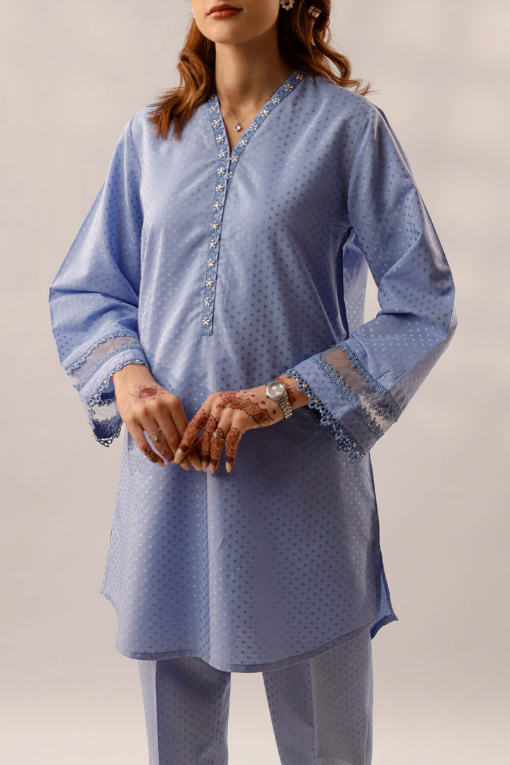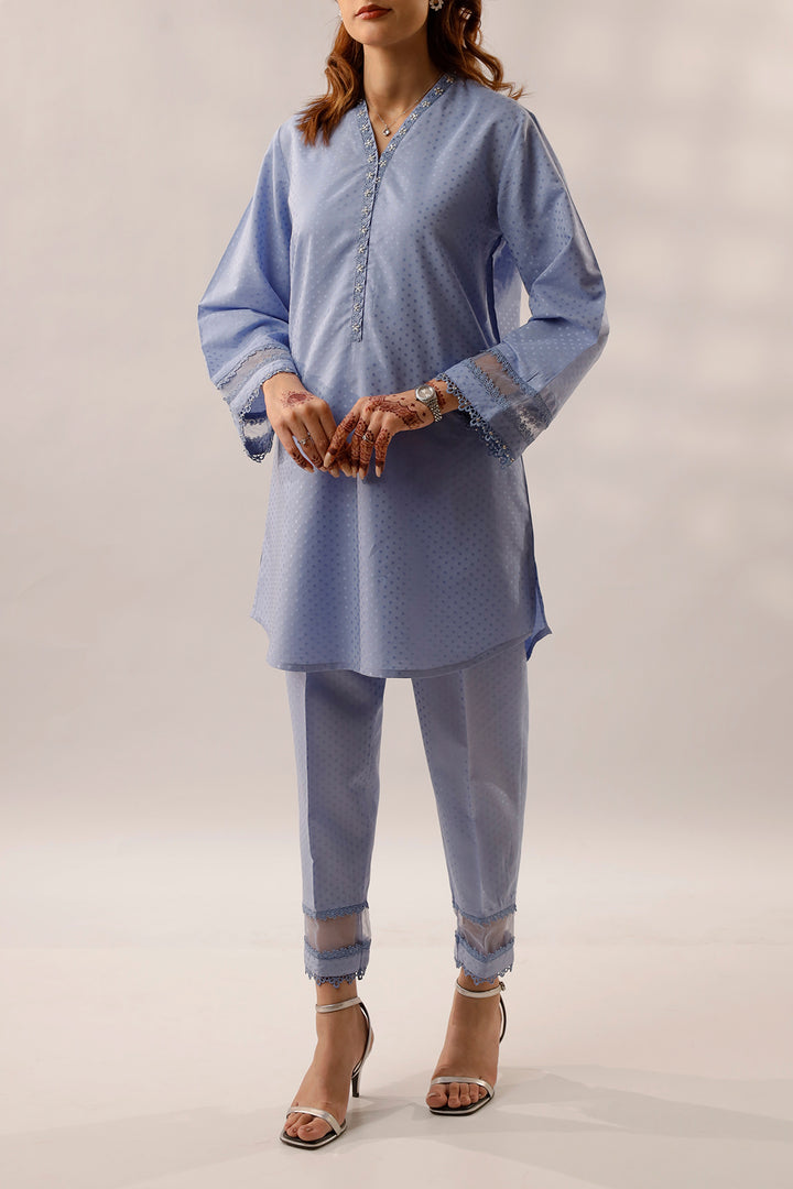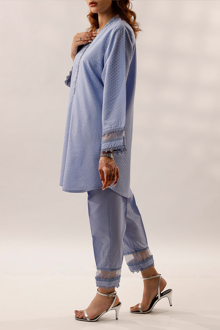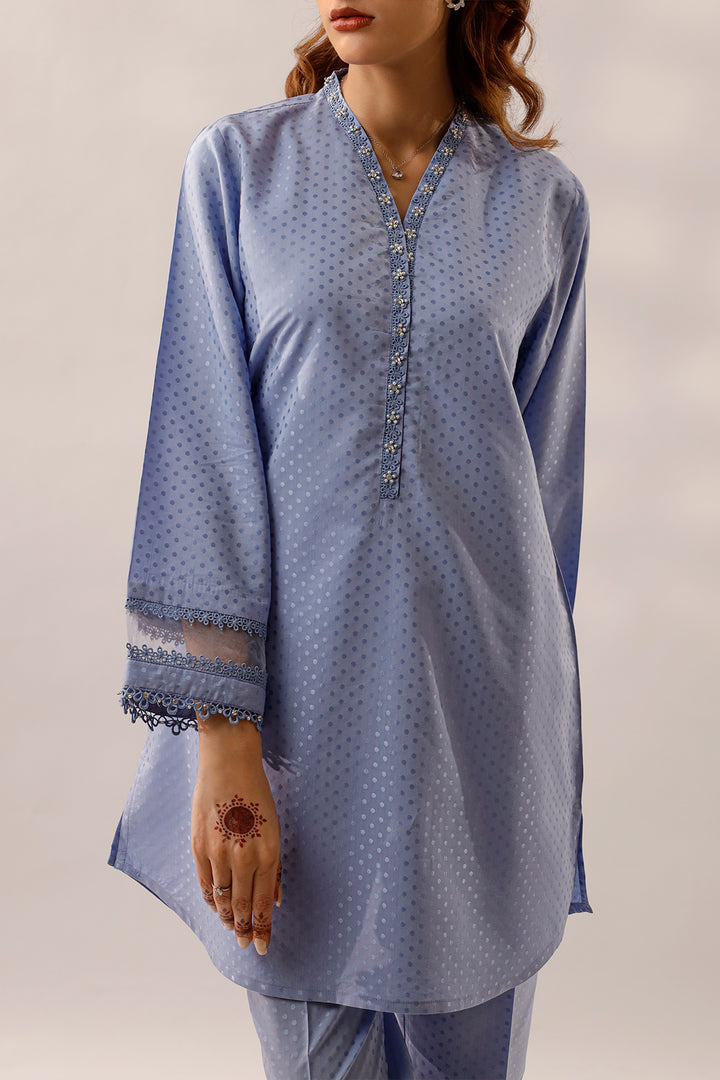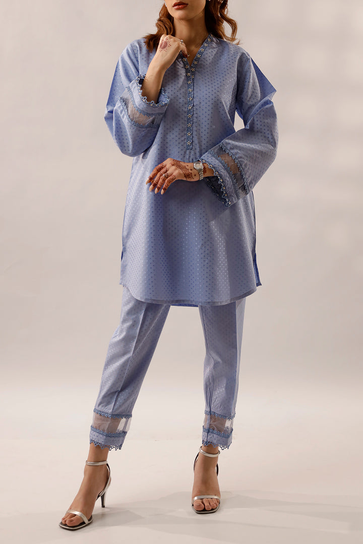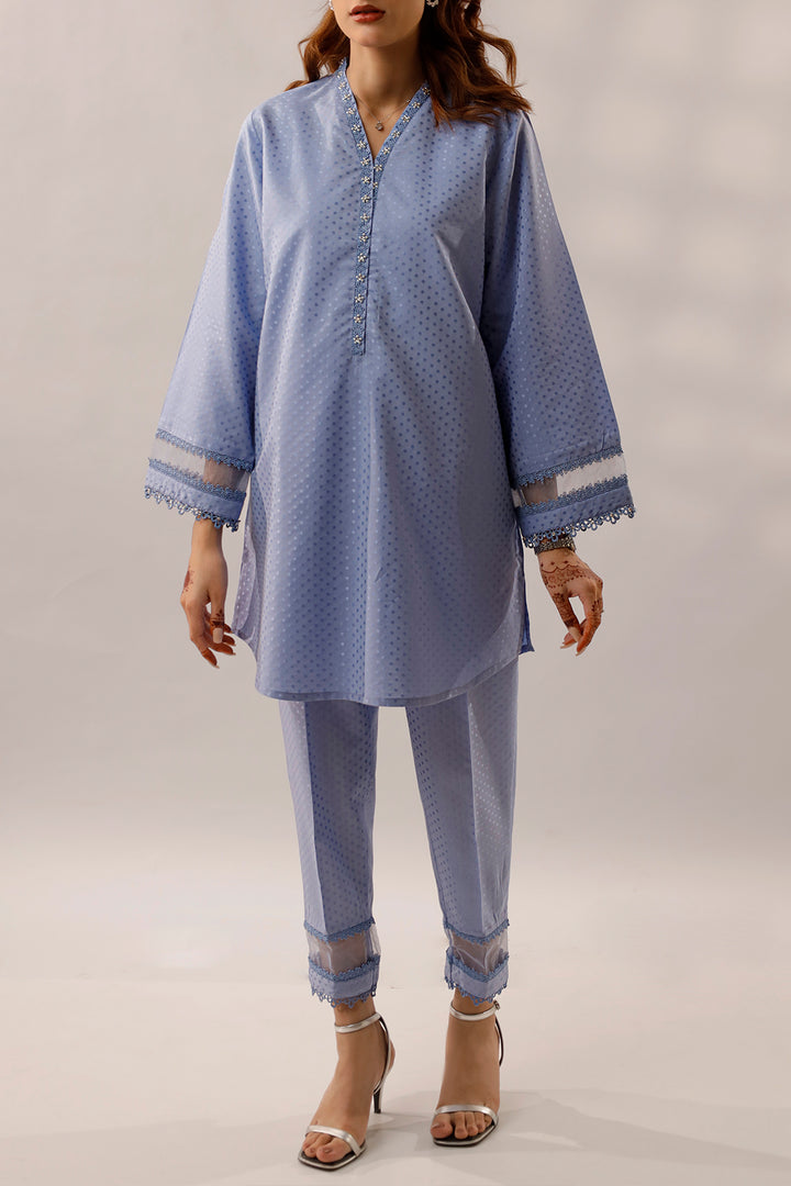 Saya's Stitched Self Jacquard 2-Piece Set (Design: SP-7431) in Ice Blue offers an exquisite blend of style and comfort. Crafted from high-quality self-jacquard fabric, this ready-to-wear ensemble features intricate patterns that add depth and elegance to your look. Ideal for both casual and formal events, the set includes a well-fitted shirt and matching trousers, ensuring you're dressed to impress.