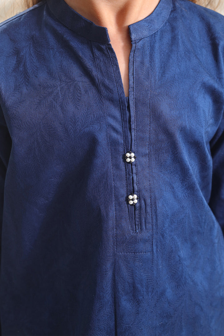 Classic And Charming, This SAYA Stitched Self Jacquard Shirt For Kids In Soft Blue Blends Timeless Style With Everyday Comfort. The Premium Jacquard Fabric Features A Subtle Self-Pattern That Adds Depth Without Overwhelming The Design. Expert Stitching And Clean Finishes Ensure Durability And Neat Lines, Even With Active Wear. Ideal For Family Gatherings, Festive Occasions, Or Smart Casual Days, This Shirt Offers A Polished Look That Keeps Young Ones Comfortable And Stylish.