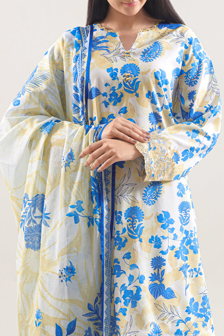 Elevate Your Winter Wardrobe With The Unstitched Printed Embroidered Cotton-Tencel 3-Piece Set From SAYA. Crafted From A Luxurious Blend Of Cotton And Tencel That Delivers Softness, Drapability And Breathability, This Ensemble Features A Shirt Panel With Elegant All-Over Print And Organza Sleeve Borders, A Coordinated Printed Dupatta And A Dyed Trouser Piece. Ideal For Festive Gatherings, Daytime Affairs Or Stylish Casual Layers, It Blends Fabric Quality, Artful Design, Utility And Fashion With Ease.