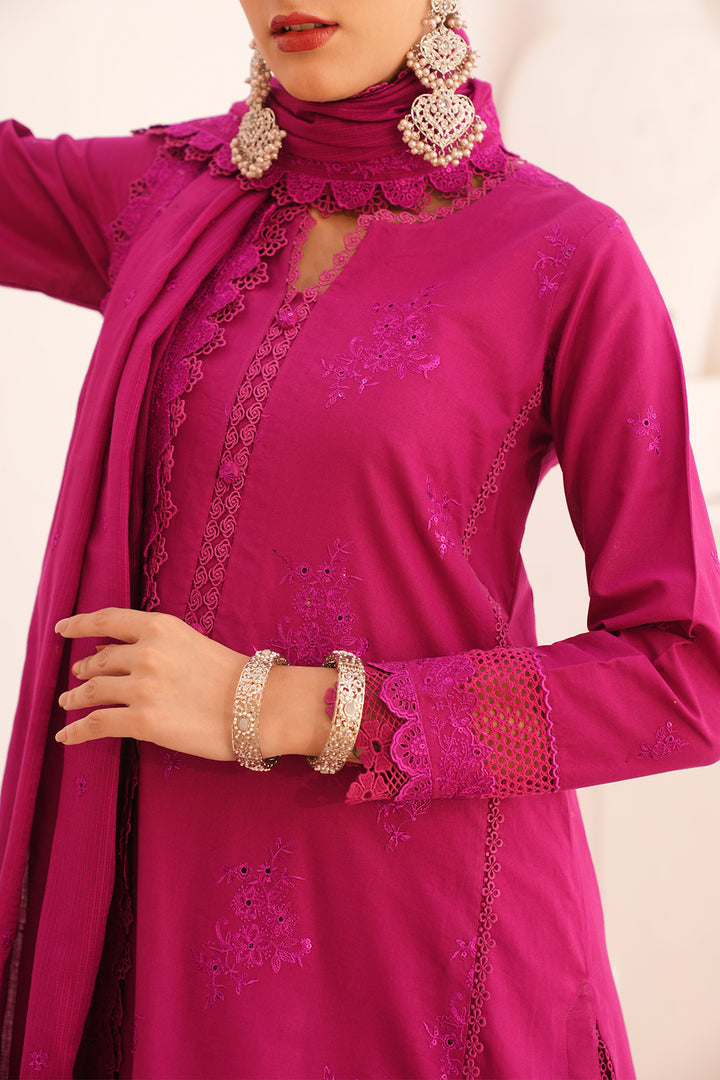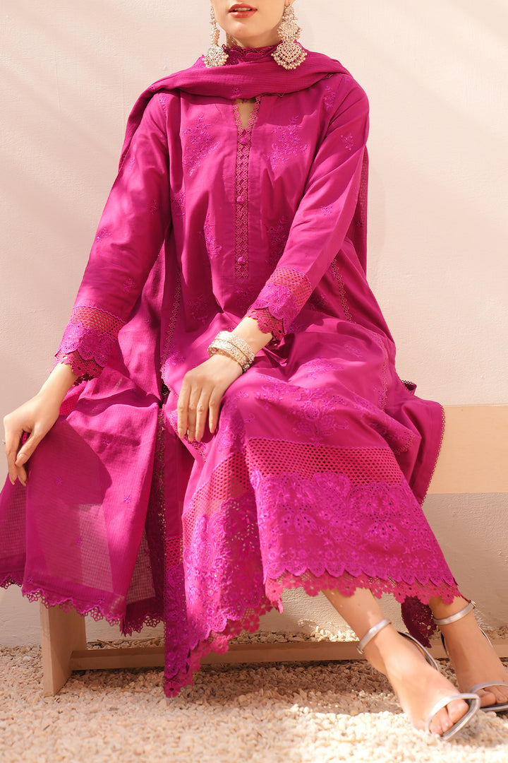 Embrace timeless elegance with Saya's Unstitched Embroidered Cambric 3-Piece Suit, paired with a graceful chiffon dupatta. Crafted from premium cambric fabric, this ensemble showcases intricate embroidery, offering a perfect blend of sophistication and versatility for your festive and semi-formal events.