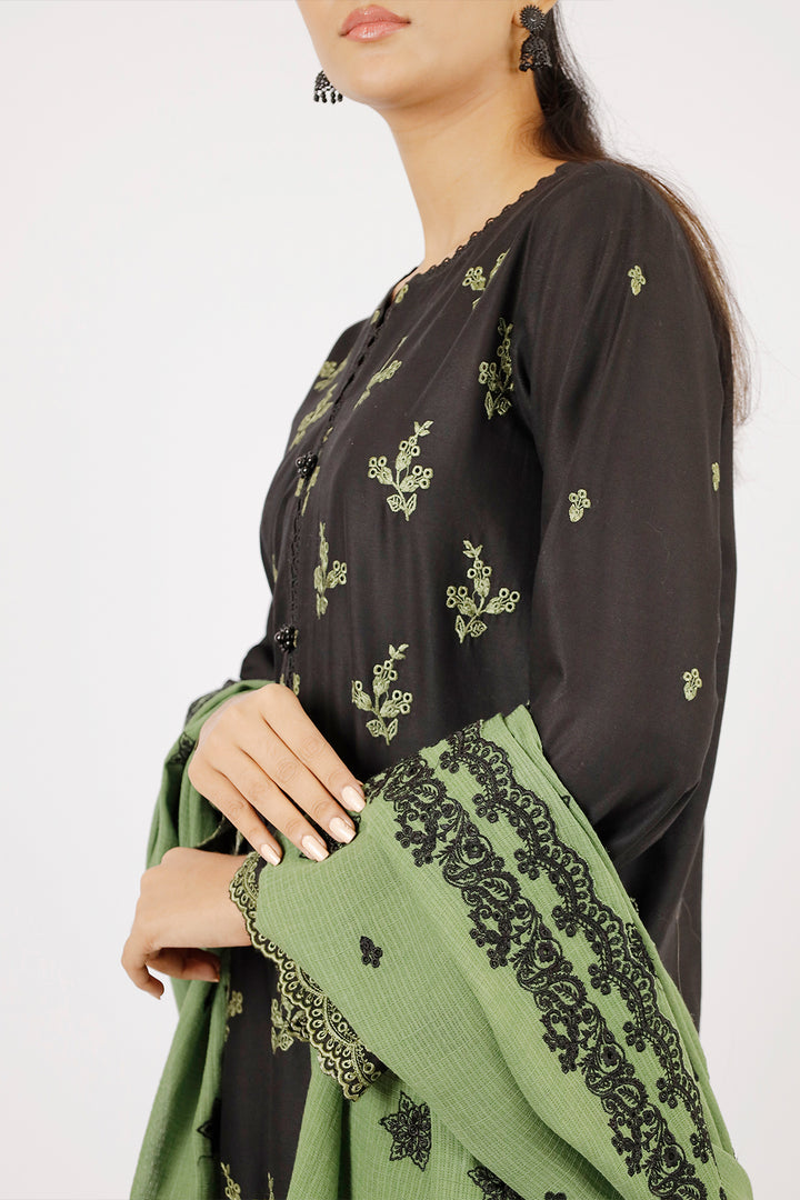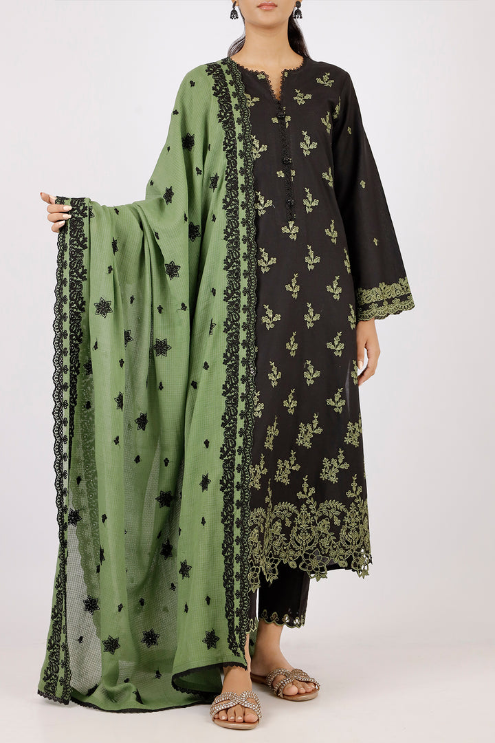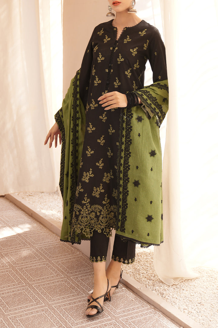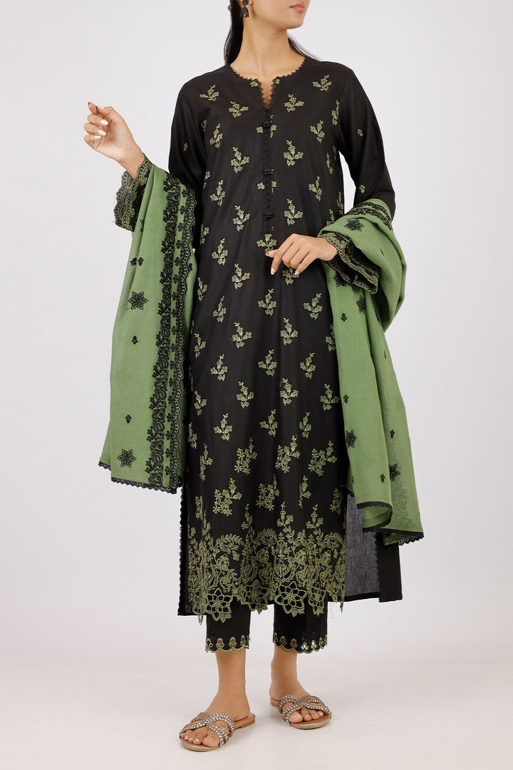Exude elegance with Saya's Unstitched Embroidered Cambric 3-Piece Suit, featuring a graceful chiffon dupatta. This ensemble combines premium cambric fabric with intricate embroidery for a refined look. The chiffon dupatta adds a touch of sophistication, making it perfect for both semi-formal and festive occasions.