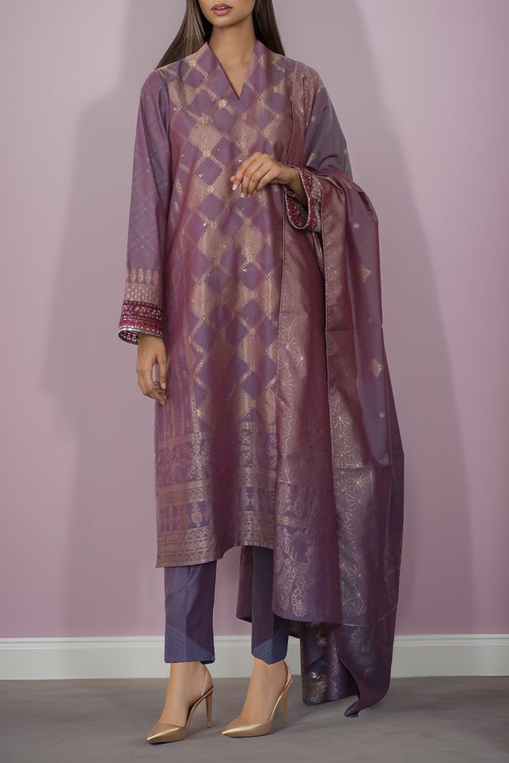 Elevate Your Wardrobe With This Unstitched Embroidered Jacquard Cotton Shirt By SAYAA Masterpiece Of Texture, Detail, And Traditional Charm. Made From Premium Jacquard Cotton, The Fabric Offers A Rich Feel With A Distinct Woven Pattern That Enhances Visual Depth. Delicate Embroidery On The Front Adds A Touch Of Elegance And Artisan Craftsmanship, Making It Perfect For Semi-Formal Gatherings, Cultural Events, Or Festive Occasions. This Unstitched Shirt Allows You To Tailor The Fit And Style To Your Liking, Offering Both Versatility And Timeless Sophistication.