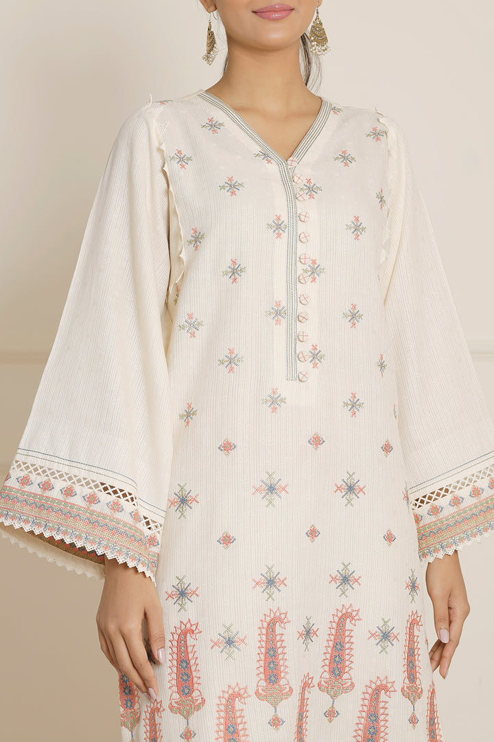 I recently ordered a two-piece embroidered article in white from SAYA in self-jacquard fabric, and I’m truly impressed! The fabric quality was excellent, soft yet structured, and the embroidery was beautifully done with neat finishing. The white color looked very graceful and fresh, perfect for both casual and semi-formal wear. What surprised me the most was the price – so reasonable for such premium quality! Highly satisfied with my purchase and will definitely shop again.