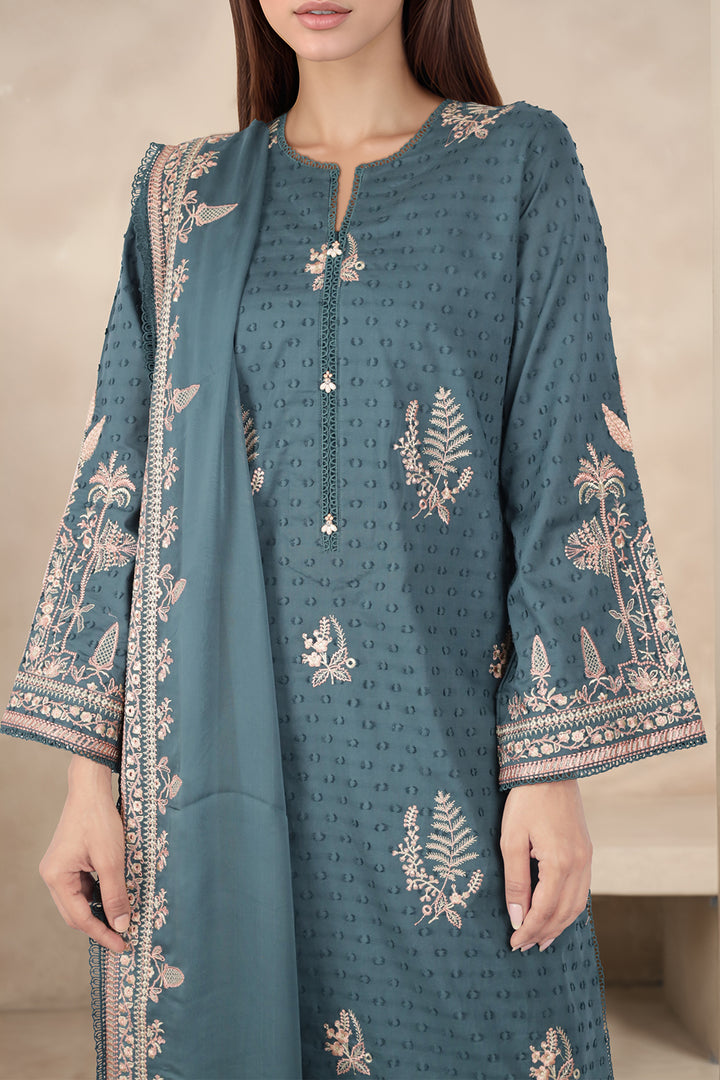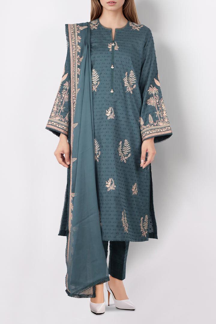 Unleash your creativity with our Unstitched Embroidered Self Jacquard 3-Piece. Made from premium self-jacquard fabric, this set features intricate embroidery, making it perfect for elegant casual or semi-formal wear. Includes fabric for a shirt, trouser, and dupatta, allowing you to design your personalized outfit.