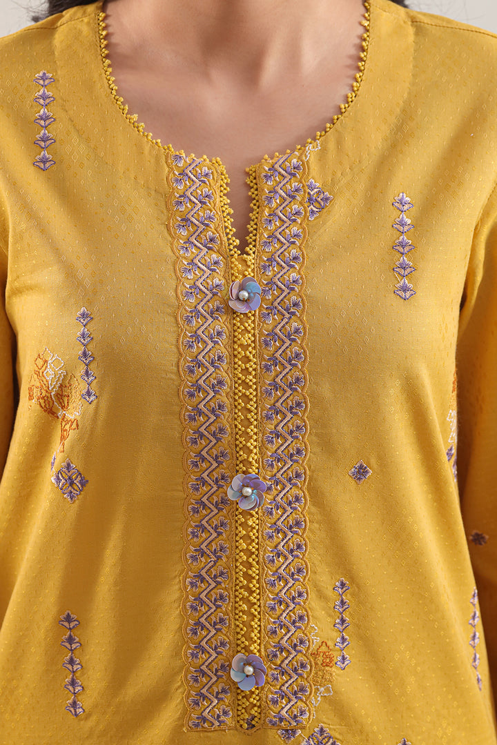 Elevate Your Wardrobe With The Unstitched Embroidered Self-Jacquard 3-Piece Set From SAYA. Meticulously Crafted In Premium Self-Jacquard Fabric That Exudes Subtle Texture And Sophistication, This Ensemble Offers A Shirt Panel With Intricate Embroidery Detailing, A Harmonized Dupatta And A Complementary Trouser Piece—All Unstitched To Allow Tailoring Freedom. Perfect For Semi-Formal Gatherings, Stylish Daywear Or Elegant Casual Moments, It Seamlessly Combines Fabric Quality, Design Detail, Utility And Fashion In One Refined Package.