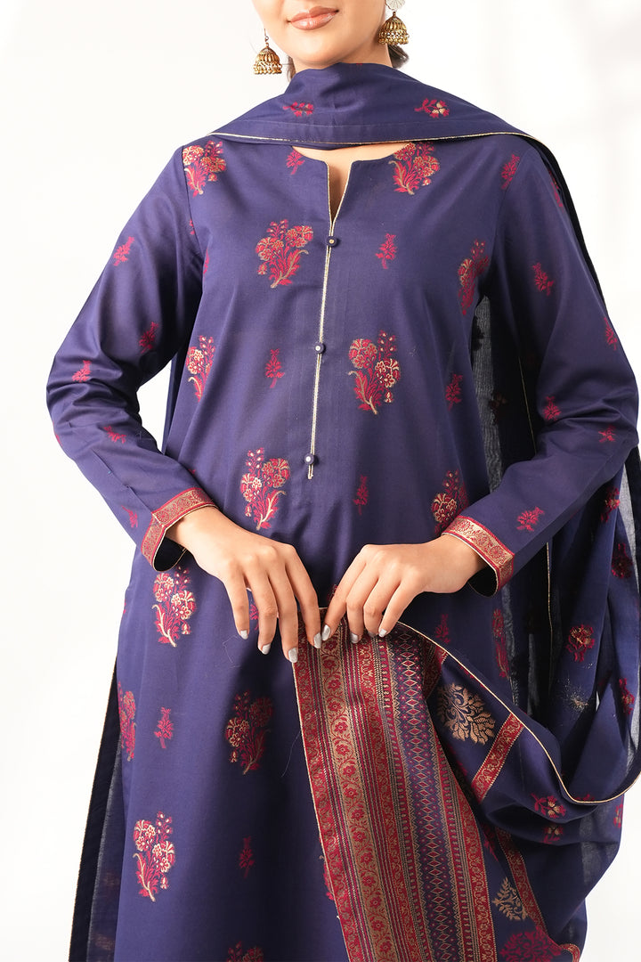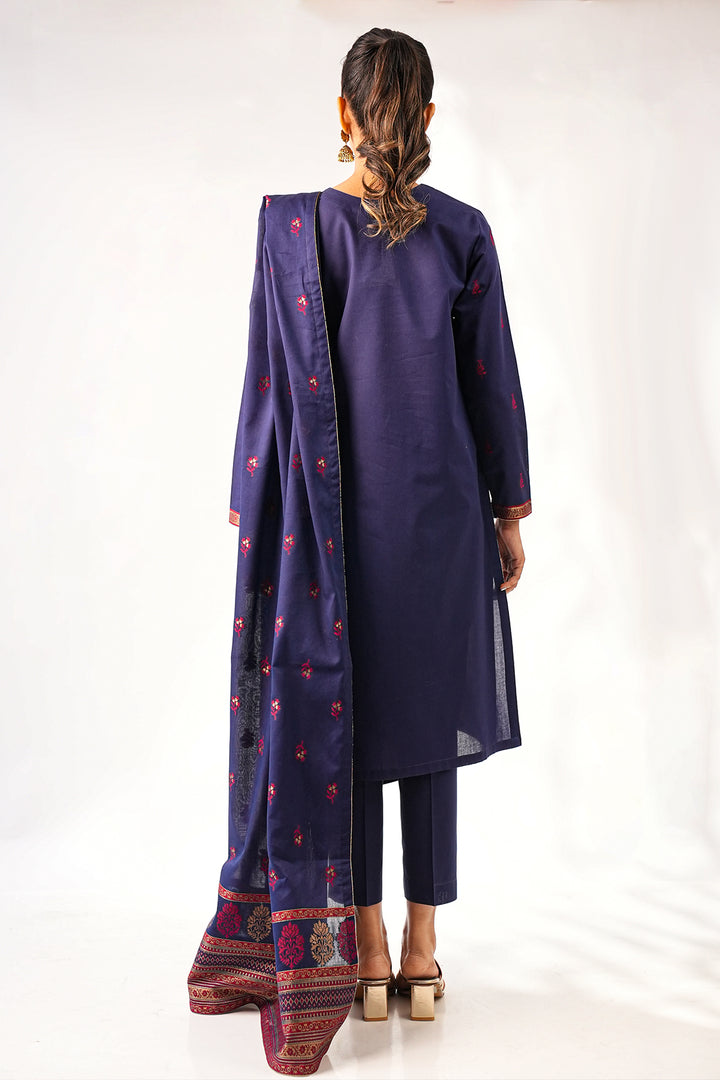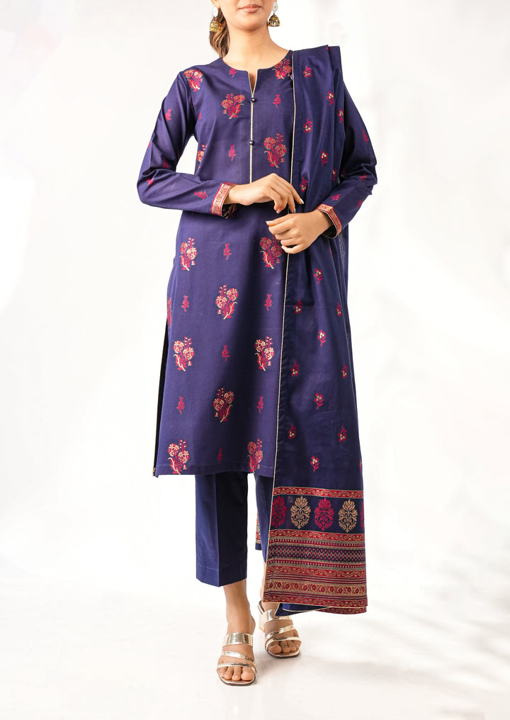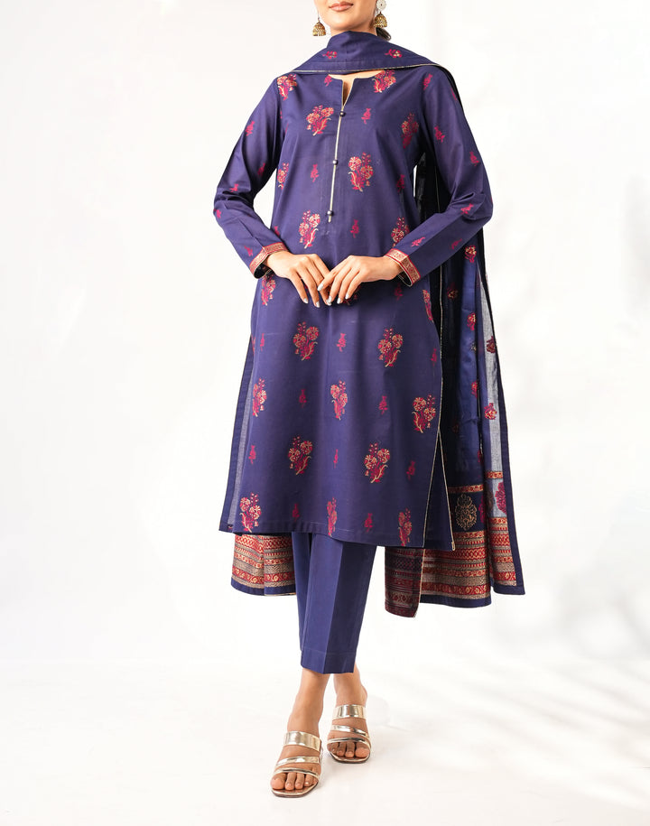 Saya's Unstitched Jacquard Cotton 3-Piece Suit in Navy Blue (Design: U02-25232-11B) offers a perfect blend of elegance and comfort, making it an ideal choice for both casual and semi-formal occasions. Crafted from premium cotton jacquard fabric, this ensemble allows for personalized tailoring to suit your unique style.