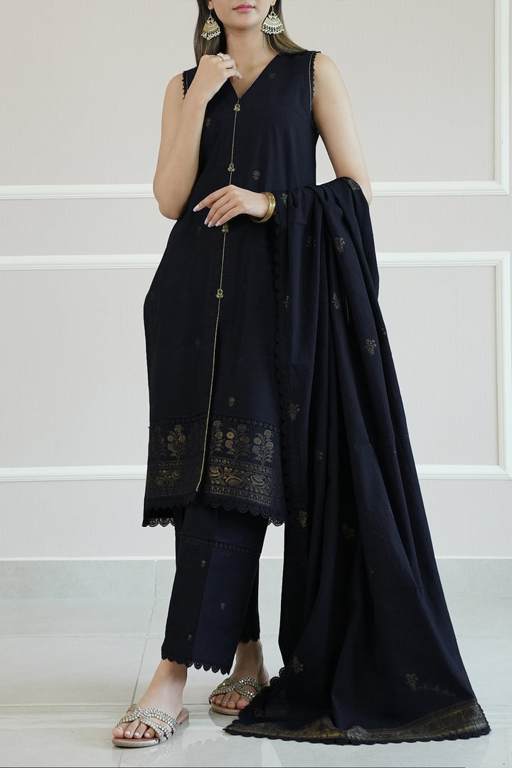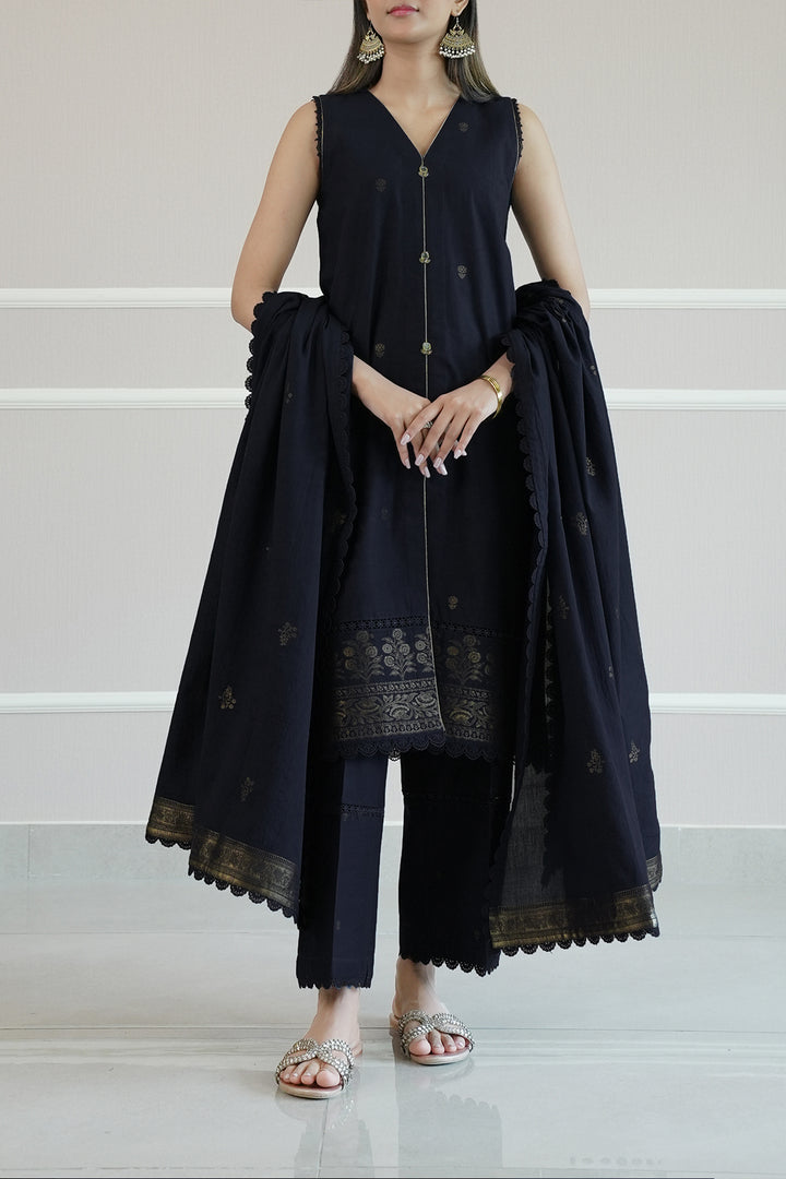 Add Understated Charm To Your Wardrobe With This Unstitched Jacquard Cotton 3‑Piece Suit From SAYA, Crafted For Contemporary Sophistication. Featuring A Subtly Textured Jacquard Shirt That Offers Both Style And Structure, Paired With A Solid Dyed Trouser And Coordinated Jacquard Dupatta. This Ensemble Is Ideal For Creating Tailored Looks Suitable For Semi-Formal Gatherings, Office Wear, Or Daytime Events With A Touch Of Elegance.