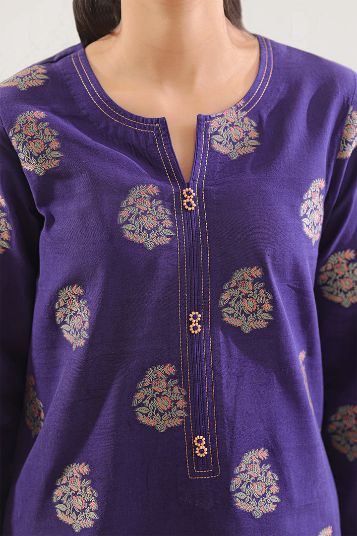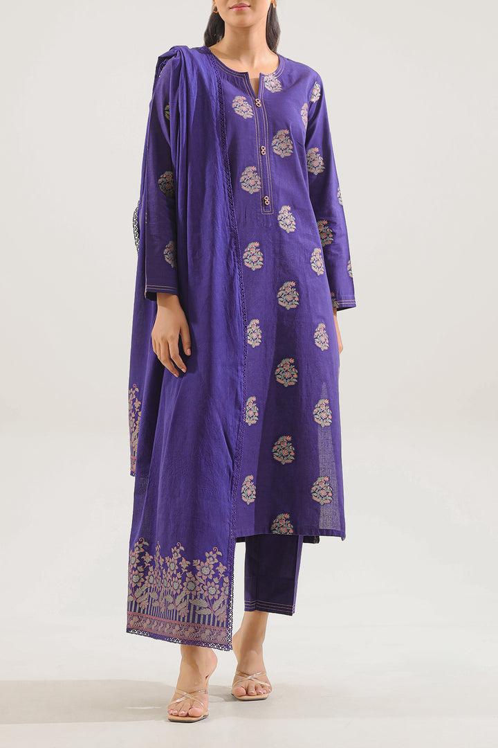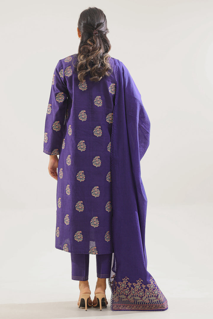 Regal And Versatile, This SAYA Unstitched Jacquard Cotton 3-Piece In Purple Presents A Luxurious Canvas For Your Signature Style. The Cotton Jacquard Fabric Showcases A Rich Self-Pattern That Captures Light And Adds Depth Without Distraction. Its Texture Offers Just The Right Balance Of Poise And Breathability. This Set Includes Shirt, Trouser And Dupatta In Unstitched Form, Giving You Full Control Over Fit And Detailing. Ideal For Weddings, Festive Events, Or Elevated Day Wear, It Merges Creative Freedom With Elegant Presence.