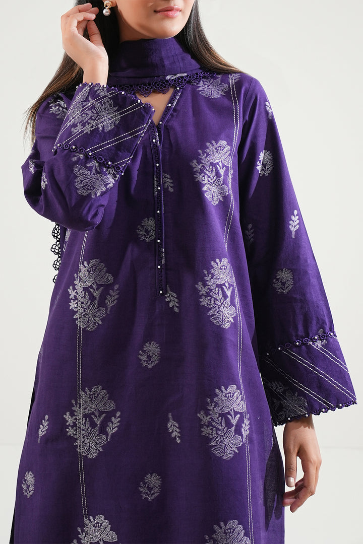 This Unstitched Jacquard Cotton 3-Piece Set From SAYA. Woven In Premium Jacquard Cotton, The Fabric Features Intricate Raised Patterns That Deliver A Rich Textural Depth And Luxurious Feel. The Shirt’s Elegant Woven Design Offers Visual Sophistication Without Relying On Printed Motifs. A Coordinated Dupatta Adds Fluid Grace And A Refined Silhouette, While The Dyed Trouser Panel Provides Tailoring Structure And Flexibility. This Ensemble Is Ideal For Festive Tailoring, Elegant Daywear, Or Bespoke Stitching Projects Where Quality, Comfort, And Style Converge.