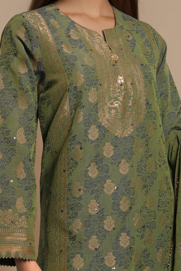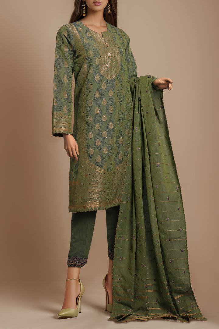 Add elegance to your wardrobe with this unstitched jacquard cotton shirt by Saya.pk. Crafted from premium jacquard cotton, it features a rich texture and refined pattern, perfect for creating a graceful eastern look. Ideal for festive and formal wear.