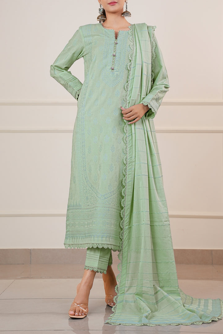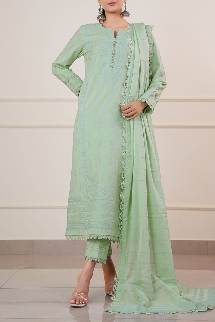Experience Timeless Elegance With This Unstitched Jacquard Cotton Shirt By SAYA, Designed For The Modern Woman With A Taste For Understated Luxury. Made From High-Grade Jacquard Cotton, The Shirt Features A Subtle Yet Sophisticated Woven Pattern That Enhances Its Texture And Visual Depth. Its Breathable Fabric Ensures Day-Long Comfort, Making It Perfect For Semi-Formal Gatherings, Office Wear, Or Smart Everyday Outfits. This Versatile Piece Offers A Perfect Canvas For Customized Stitching In Both Classic And Contemporary Cuts.