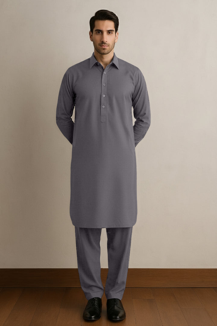 Unstitched Premium Blended Wear Suit By SAYA Crafted From A Refined Blend That Offers Comfort, Structure, And Elegant Drape. The Milestone Grey Hue Brings A Distinctive, Modern Sophistication — Perfect For Formal Events, Office Wear, Or Daytime Elegance. This 2-Piece Fabric Set (Shirt + Trouser Yardage) Gives You Full Creative Control Over Tailoring And Style. A Classy Foundation Piece That Elevates Any Custom Outfit With Understated Grace.