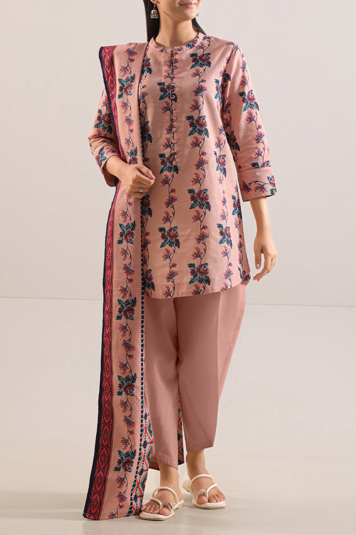 This Unstitched Printed Cotton Khaddar 3-Piece Suit By SAYA. Crafted From Traditional Cotton Khaddar—Beloved For Its Durable Weave And Natural Insulation—This Set Includes A Generous Printed Shirt Panel, A Complementary Printed Dupatta, And A Dyed Trouser Panel Ready For Tailoring. Khaddar Is Celebrated For Its Coarse Yet Breathable Texture, Offering Natural Warmth Without Bulk—Perfect For Cooler Climates While Remaining Lightweight And Stylish . Designed For Winter Gatherings, Everyday Cozy Wear, Or Festive Stitching, It Strikes A Balanced Blend Of Heritage Charm And Tailoring Freedom.