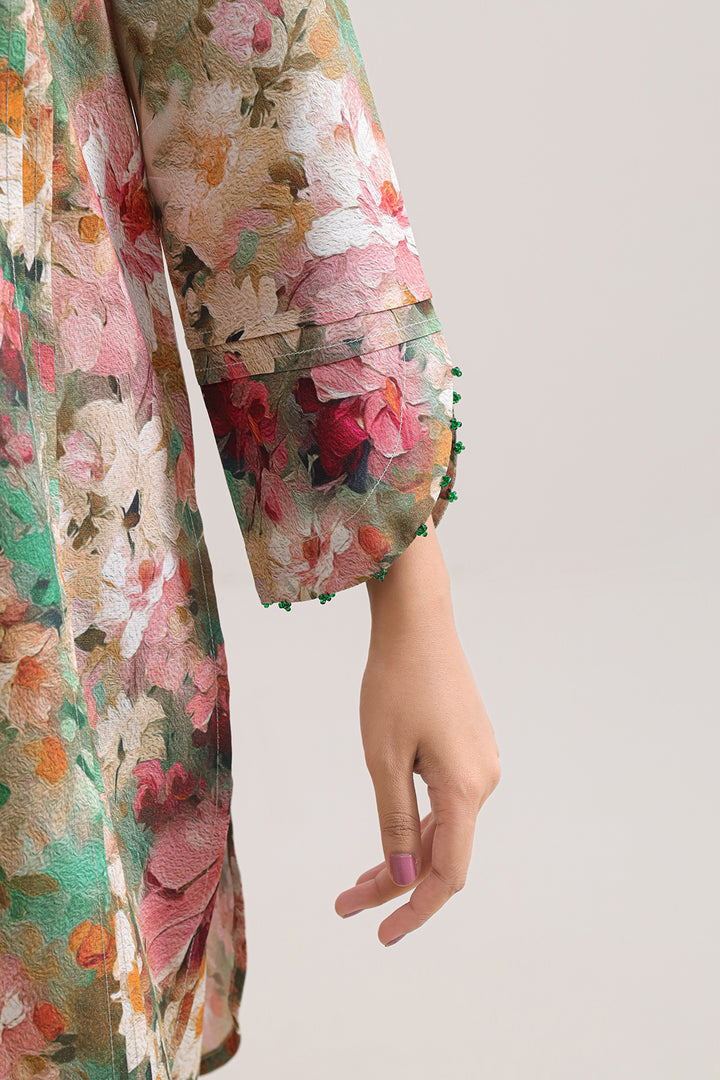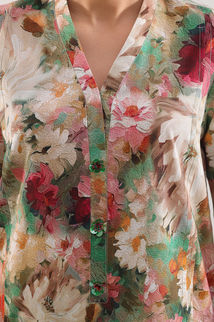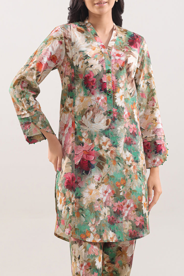 SAYA Unstitched Printed Arabic Linen 2-Piece Showcases Breathable Linen Fabric With Elegant Arabic Print On The Shirt Panel Alongside A Plain Trouser Panel. Tailoring Freedom, Cool Comfort, And Subtle Cultural Style Make It Ideal For Warm Climates, Casual Outings, Or Festive Summer Ensembles.