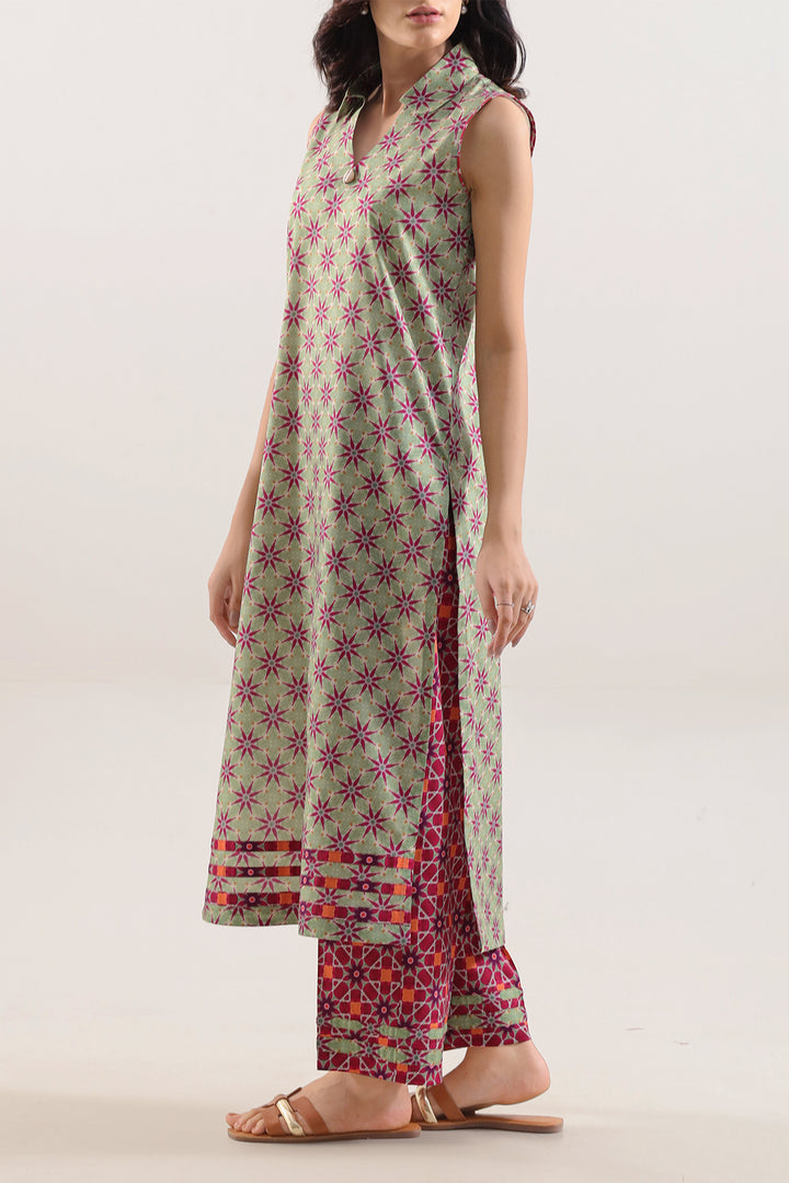 SAYA Unstitched Printed Arabic Linen 2-Piece Combines Breathable Linen Fabric With Elegant Arabic Print On The Shirt Panel, Paired With A Plain Trouser Panel. Designed For Warm Climates, It Offers Tailoring Flexibility, Cool Comfort, And Stylish Appeal For Casual, Festive, Or Summer Wardrobe.