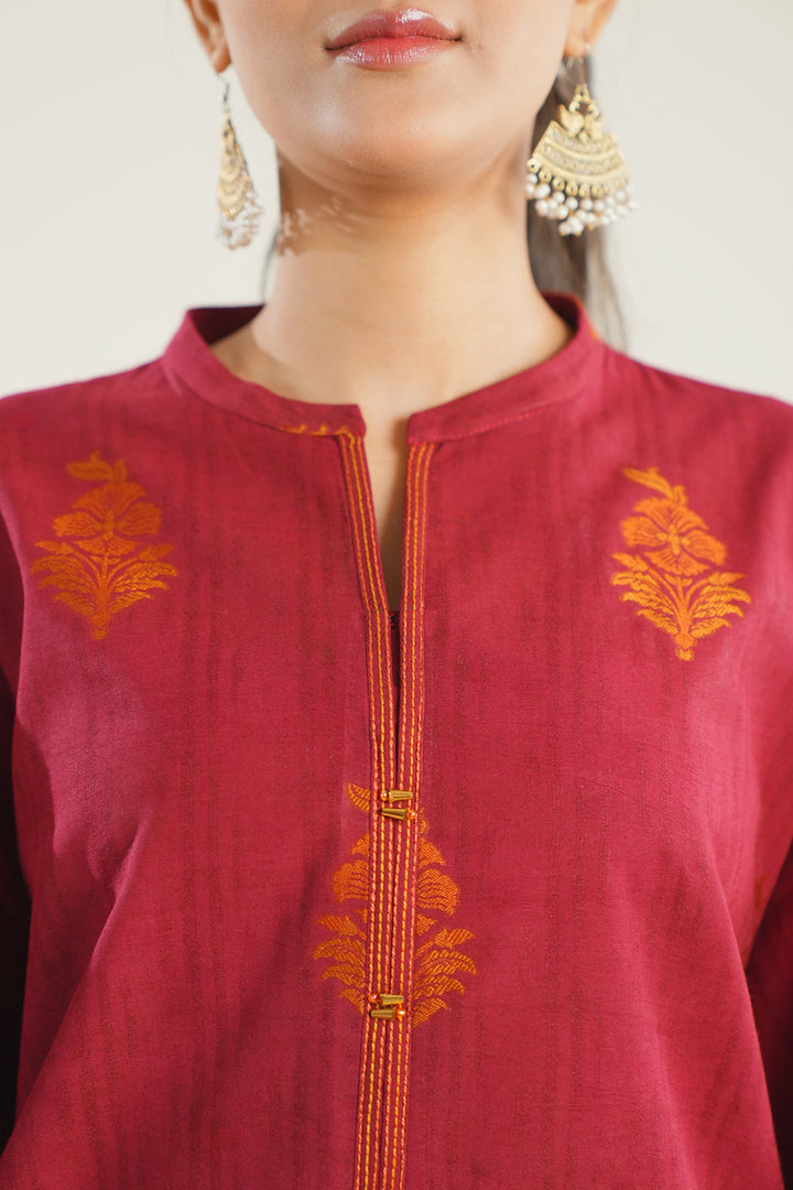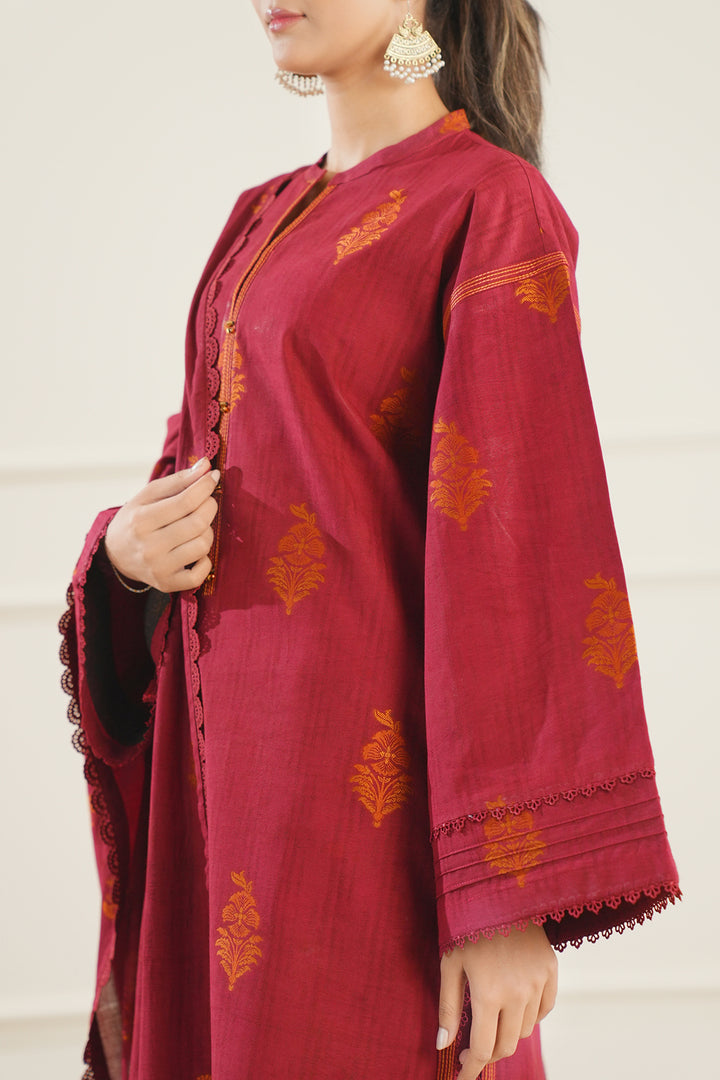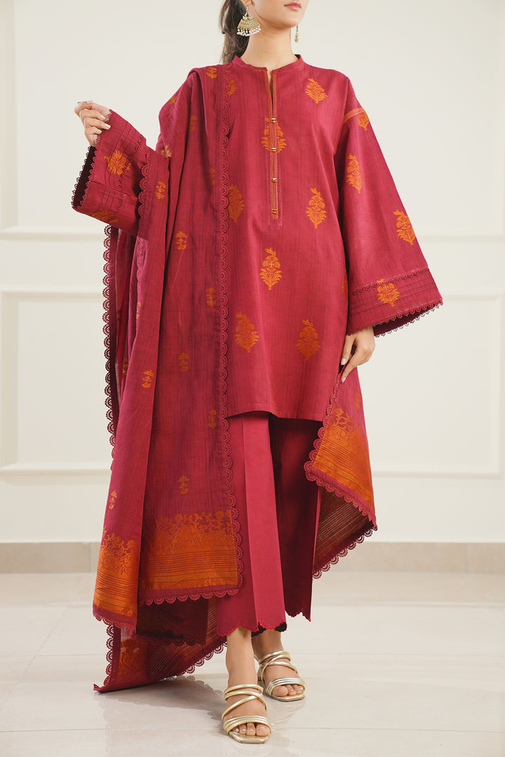 Elevate your summer wardrobe with Saya.pk's Unstitched Printed Cotton Jacquard 3-Piece ensemble in a rich maroon hue. Crafted from premium cotton jacquard fabric, this set features a beautifully designed digital print that adds a touch of sophistication. The ensemble includes a wider-width shirt, a matching dupatta, and a dyed cambric trouser, allowing you to create a look that's both classic and on-trend. Ideal for casual and semi-formal wear, this ensemble reflects Saya’s signature quality and timeless design.