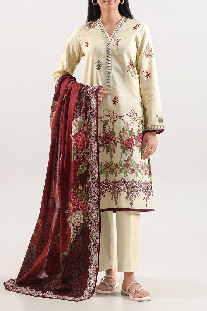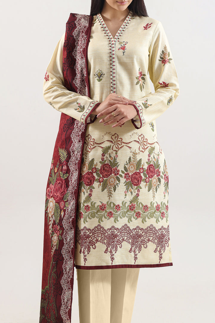 Unstitched Printed Cotton Khaddar 3-Piece By SAYA Arrives In A Soft Ivory Hue. Crafted From Premium Cotton Khaddar—which Delivers Cozy Texture And Breathable Comfort—The Shirt Panel Features A Stylish Print And Generous Width For Custom Tailoring. The Set Includes A Matching Printed Dupatta And A Dyed Trouser Piece, Together Offering Seamless Style And Personalised Fit. Ideal For Winter Daywear, Festive Gatherings, Or Smart Layered Looks.
