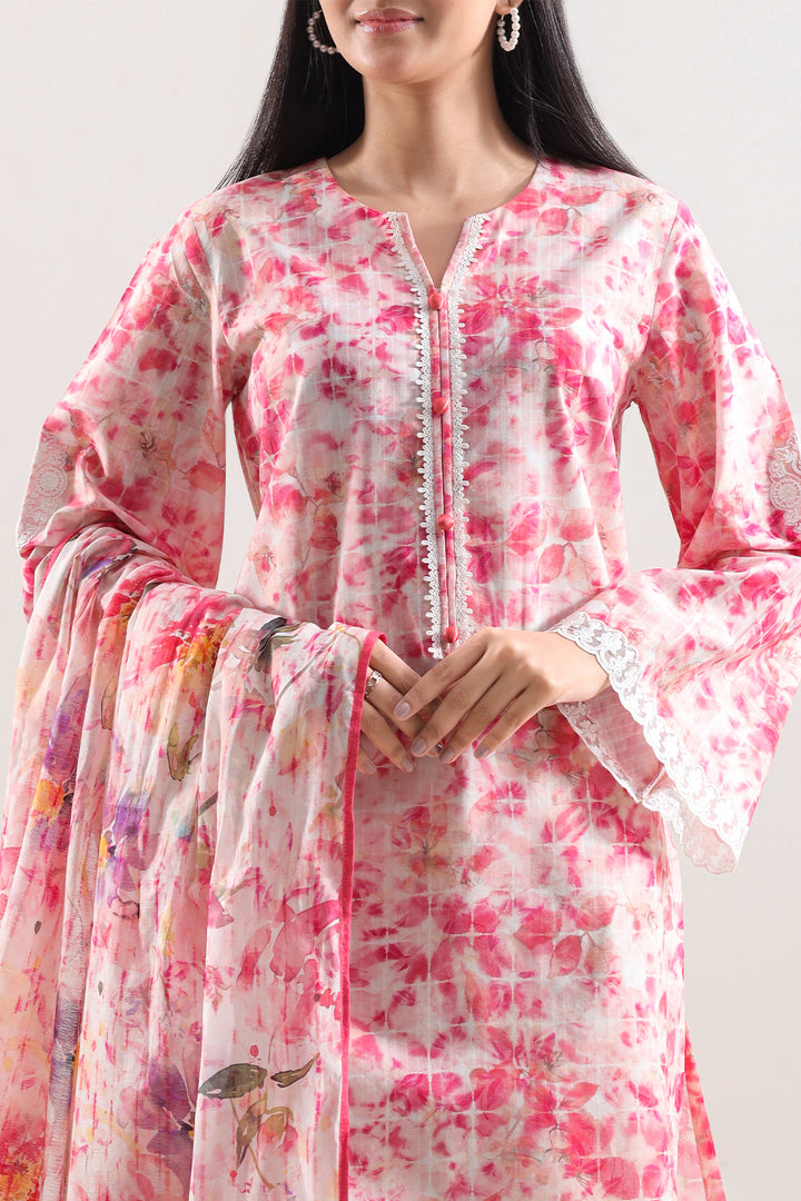 SAYA Unstitched Printed Embroidered Lawn 3-Piece Combines Feather-Light Lawn Fabric With Elegant Print And Fine Embroidery On The Shirt Panel, Accompanied By Matching Dupatta And Coordinated Trouser Panel. Ideal For Daytime Events Or Festive Gatherings, It Offers Tailoring Flexibility, Breezy Comfort, And Subtle Sophistication.