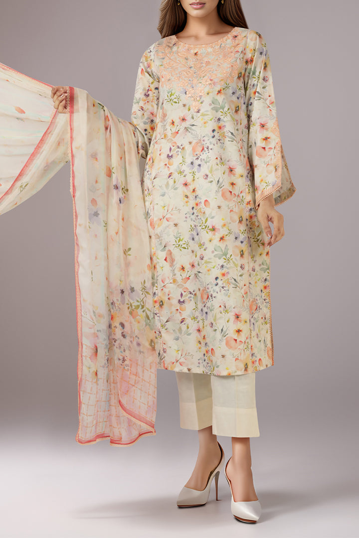 Unstitched Printed Embroidered Self Jacquard 3 Piece With Chiffon Dupatta