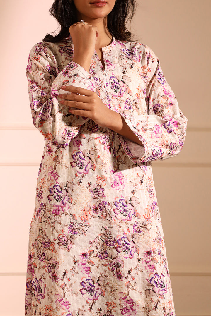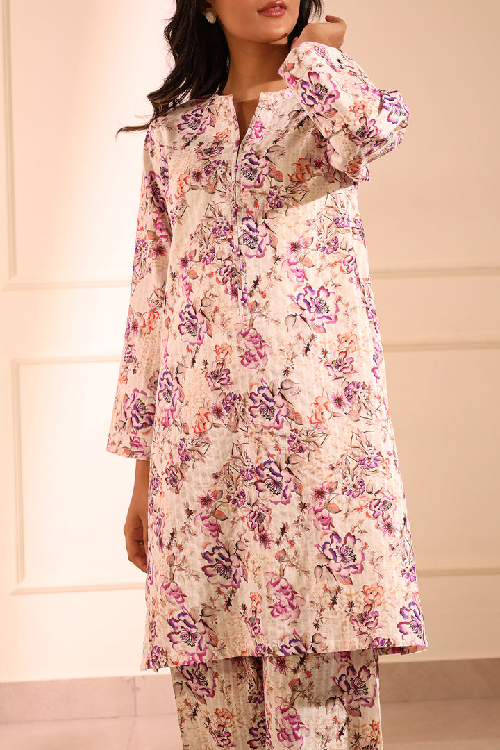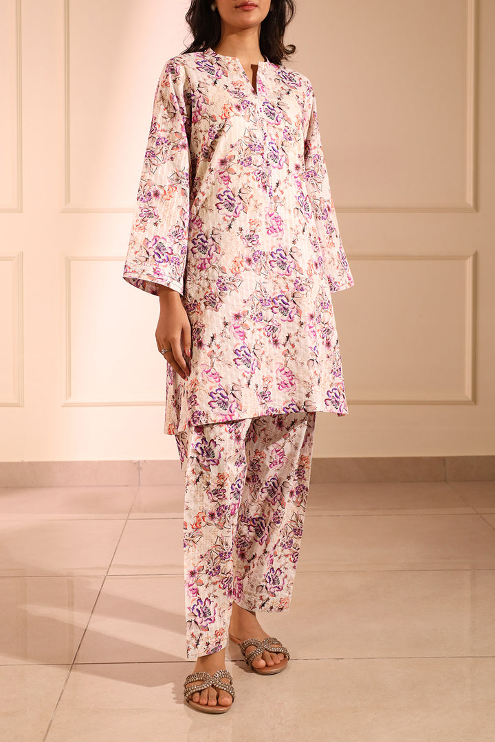 This unstitched 2-piece suit features a pastel-toned floral print on breathable lawn fabric. Ideal for summer, it offers the freedom to tailor your perfect fit. Great for casual wear or light day events, it blends elegance and comfort in one package.