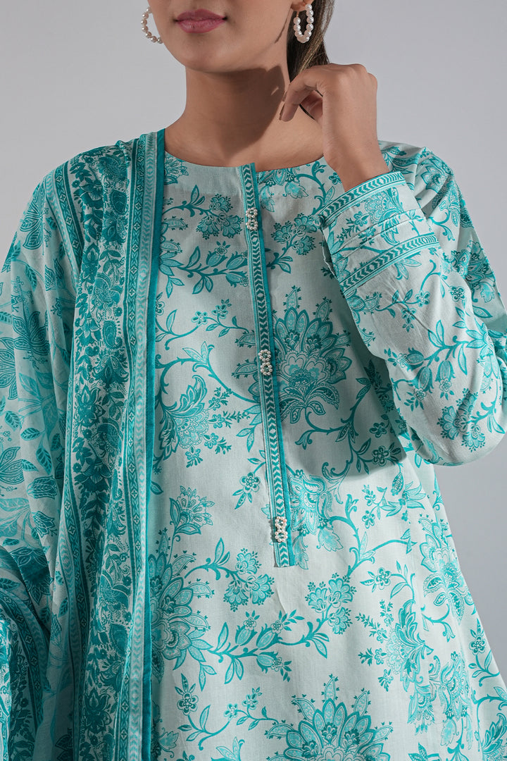 SAYA's Unstitched Printed Lawn Three-Piece Collection Presents A Sophisticated All-Over Design On Premium, Breathable Fabric. This Ensemble, Including A Shirt, Trouser, And Dupatta, Is Designed For Custom Tailoring To Achieve A Perfect Personalized Fit. Ideal For Creating Elegant Summer Wear For Casual Outings, Garden Parties, And Daytime Events, It Offers Unmatched Softness, Versatile Styling, And Effortless Warm-Weather Sophistication.
