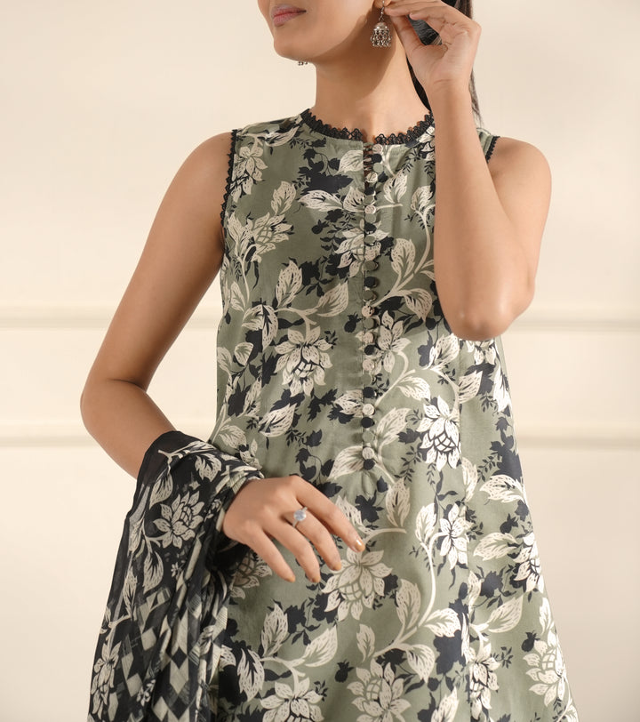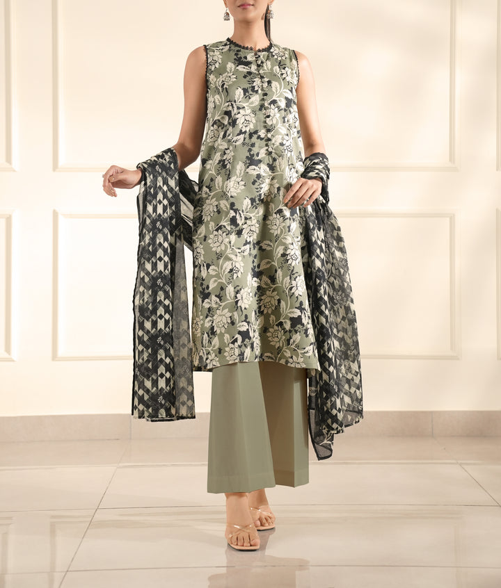 Craft your perfect summer wardrobe with the Unstitched Printed Lawn 3-Piece Set from Saya.pk. Made from premium 100% lawn fabric, this set offers exceptional breathability with and a featherlight feel perfect for Pakistan's climate. The set includes: