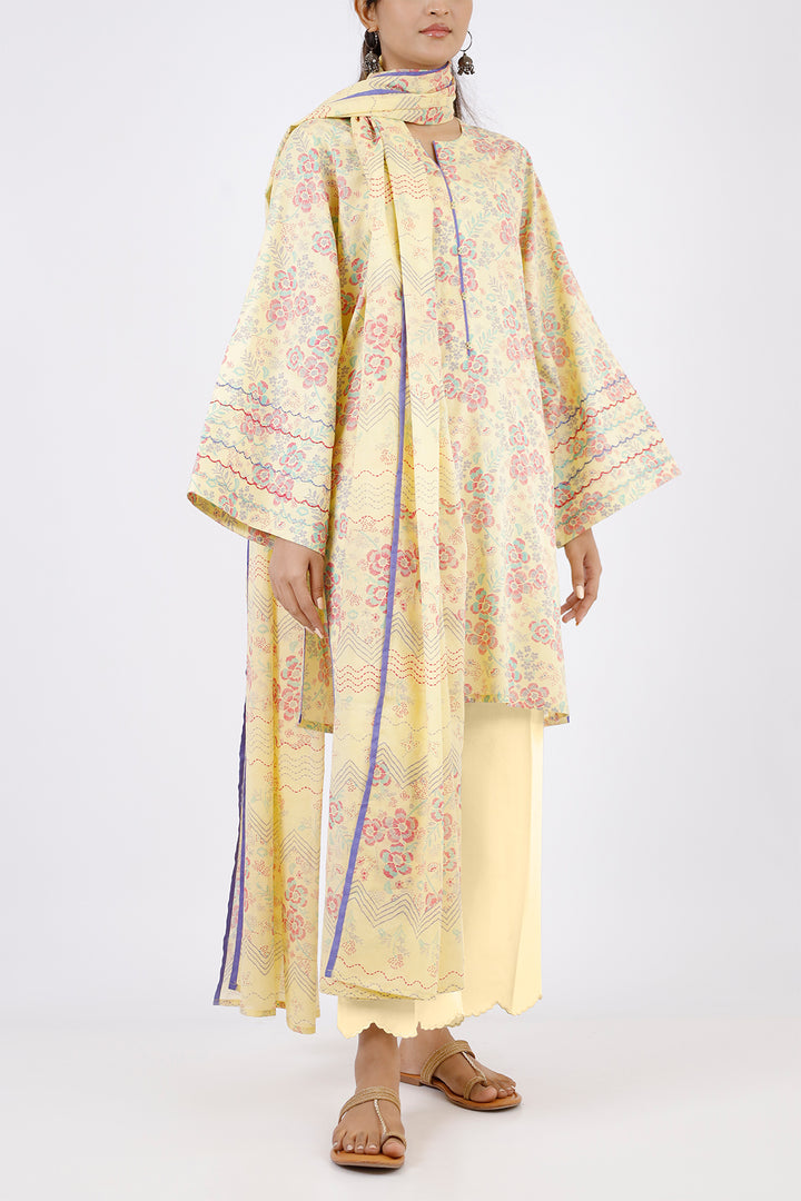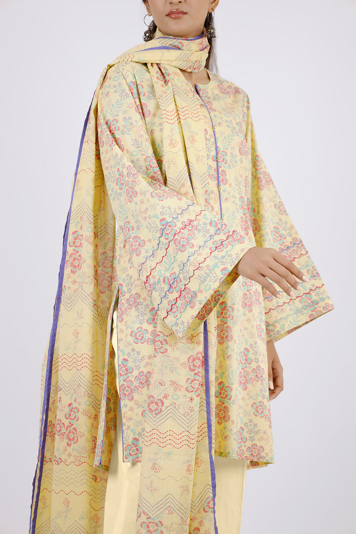 Upgrade your wardrobe with the Unstitched Printed Lawn 3-Piece Set from Saya.pk. This versatile set is crafted from premium-quality lawn fabric, known for its softness, breathability, and lightweight feel, making it perfect for Pakistan's warm climate. The set includes an unstitched shirt, trouser, and dupatta, all featuring a beautifully printed design that blends traditional charm with modern elegance. Customize the fit to your preference for a personalized look. Ideal for casual outings, family gatherings, or festive occasions, this set offers endless styling possibilities.