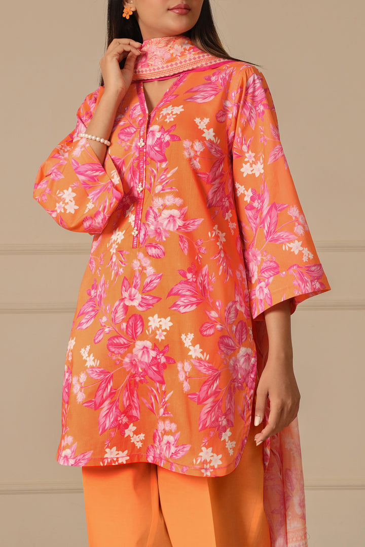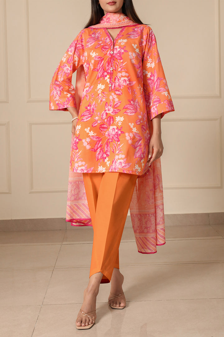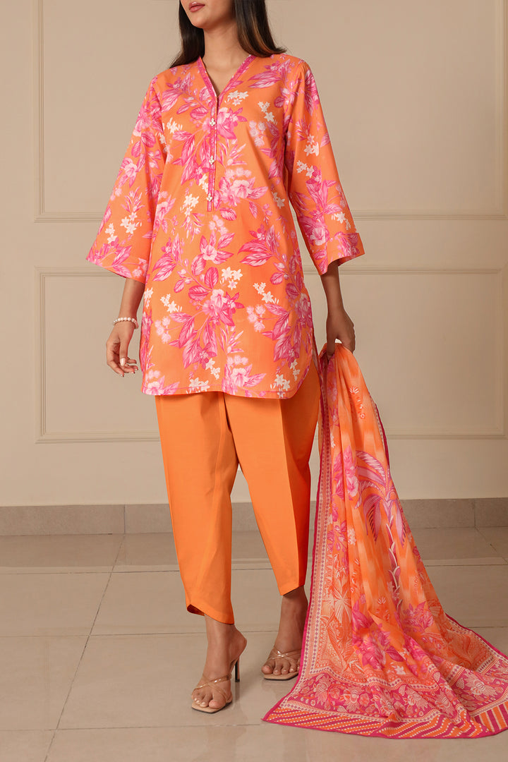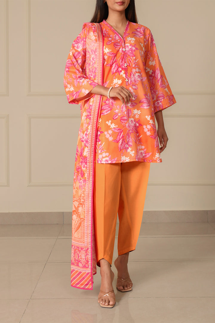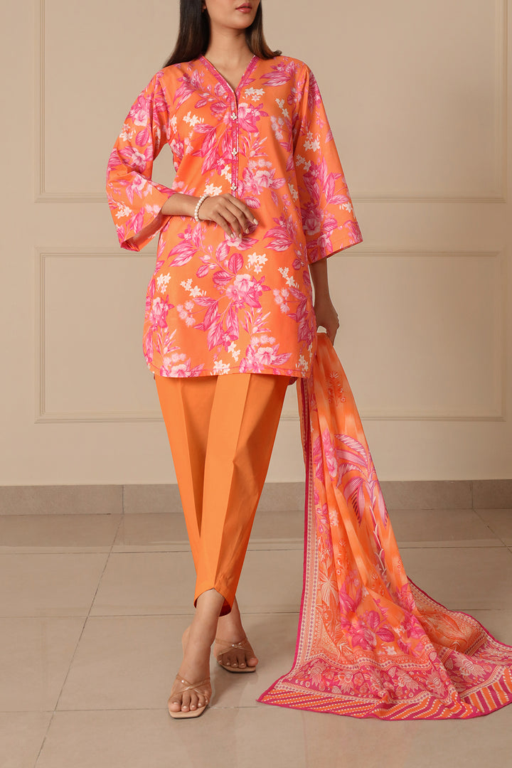 Infuse Your Summer Collection With This SAYA Unstitched Printed Lawn 3‑Piece. Crafted From Lightweight, Breathable Lawn Fabric, The Shirt Features A Striking Orange Print That Brings Vibrancy And Seasonal Charm. Paired With A Dyed Trouser And A Coordinated Printed Dupatta, This Ensemble Offers Tailoring Freedom, Comfort, And Contemporary Elegance For Everyday Wear, Daytime Gatherings, Or Light Festive Styling.