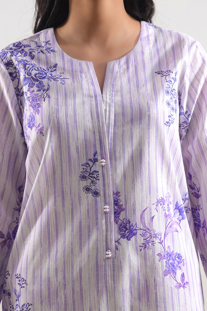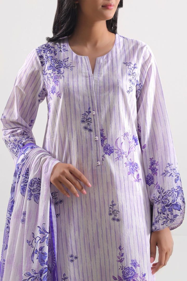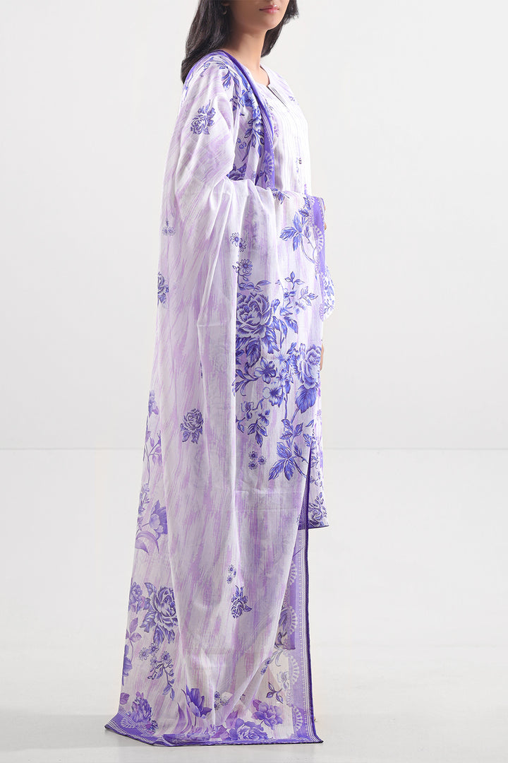 Pastel Lilac 3-Piece Unstitched Set From SAYA Features Premium Printed Lawn For Shirt And Dupatta Paired With Dyed Cambric Trouser. Printed Lawn Shirt Offers Wider Cut For Comfort And Style, While Matching Lawn Dupatta Adds Cohesive Elegance. Cambric Trouser Provides Smooth Contrast And Structured Finish. Perfect For Custom Styling, Festive Events, Or Elegant Day Wear With A Soft, Colorful Appeal.
