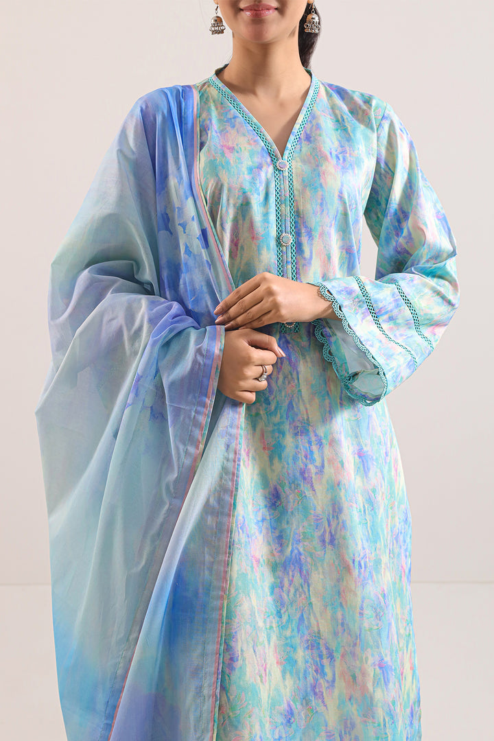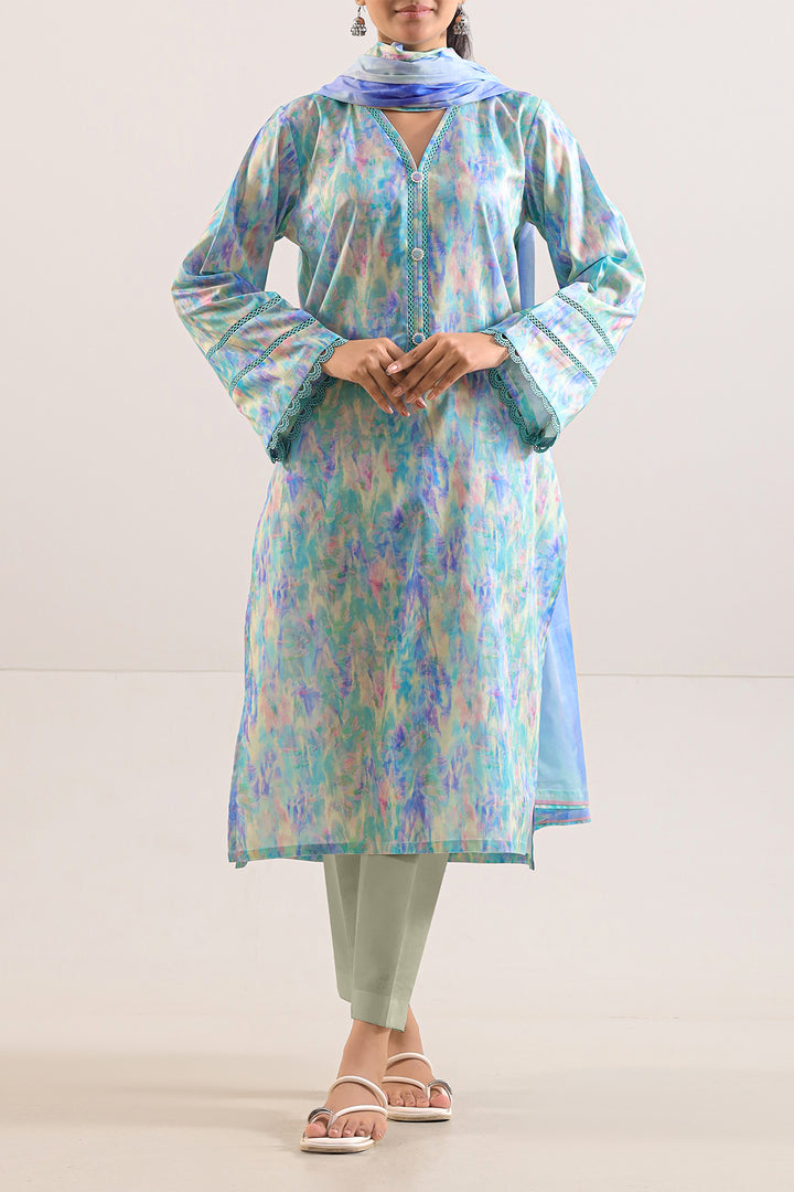 Elevate Your Summer Wardrobe With This Elegant Unstitched Printed Lawn 3-Piece By SAYA, Crafted From Soft, Breathable Lawn Fabric To Ensure All-Day Comfort. The Premium Printed Lawn Shirt Features A Generous Printed Panel Designed For Tailored Precision, While The Flowing Printed Lawn Dupatta Adds Fluid Movement And Visual Appeal. Complemented By A Dyed Cambric Trouser Offering Structured Comfort And Versatile Styling, This Ensemble In A Refreshing Cyan Tone Seamlessly Balances Utility, Personalization, And Timeless Elegance—Perfect For Casual Daywear, Festive Occasions, Or Custom Summer Creations.