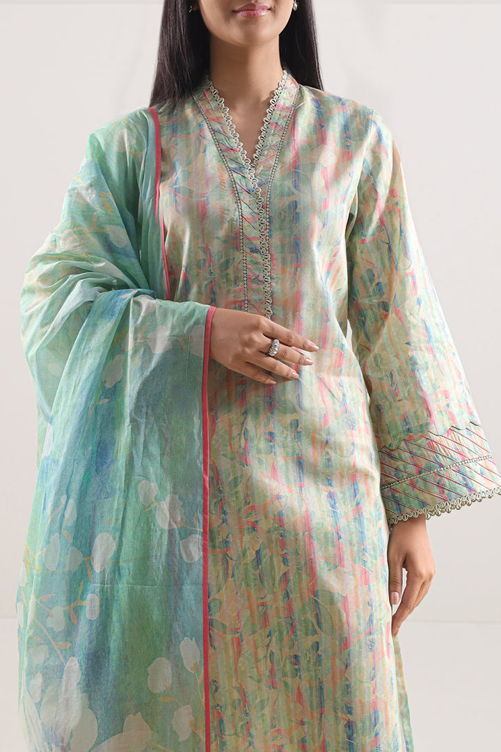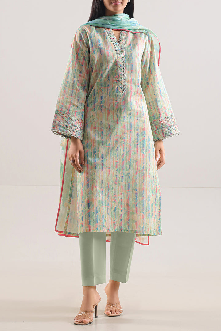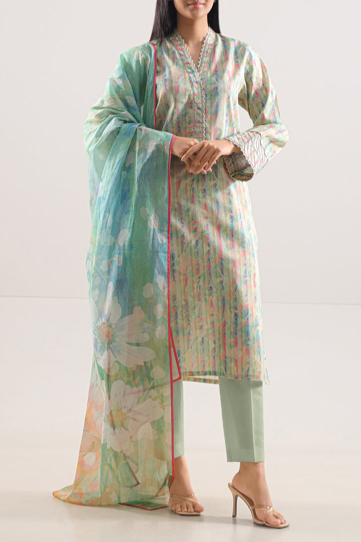 Elevate Your Summer Wardrobe With This Elegant Mint Green Unstitched Printed Lawn 3-Piece By SAYA, Crafted From Soft, Breathable Lawn Fabric To Ensure All-Day Comfort. It Features A Generous Printed Lawn Shirt Panel Designed For Tailored Precision, A Flowing Printed Lawn Dupatta That Adds Fluid Movement, And A Dyed Cambric Trouser Offering Structured Comfort And Versatile Styling. Perfect For Casual Daywear, Refined Festive Ensembles, Or Personalized Summer Stitching, This Tailoring-Ready Set Seamlessly Blends Comfort With Timeless Style.