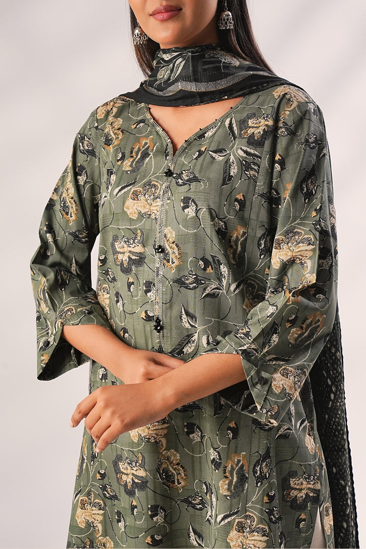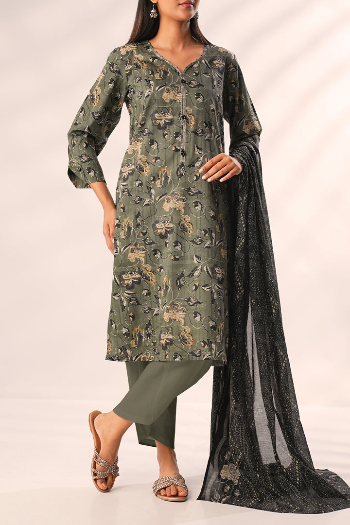 Refresh Your Summer Wardrobe With This Unstitched Printed Lawn 3‑Piece Set By SAYA, Tailored For Custom Creations And Seasonal Comfort. Crafted From Soft, Lightweight Lawn Fabric, The Shirt Panel Boasts A Subtle Digital Print That Fuses Seasonal Tones With Contemporary Style—Perfect For Tailoring Custom Kurtas, Kurtis, Or Elegant Suit Ensembles. Matched With A Coordinated Printed Lawn Dupatta That Ensures Seamless Flow And Design Harmony, And Paired With A Dyed Cambric Trouser