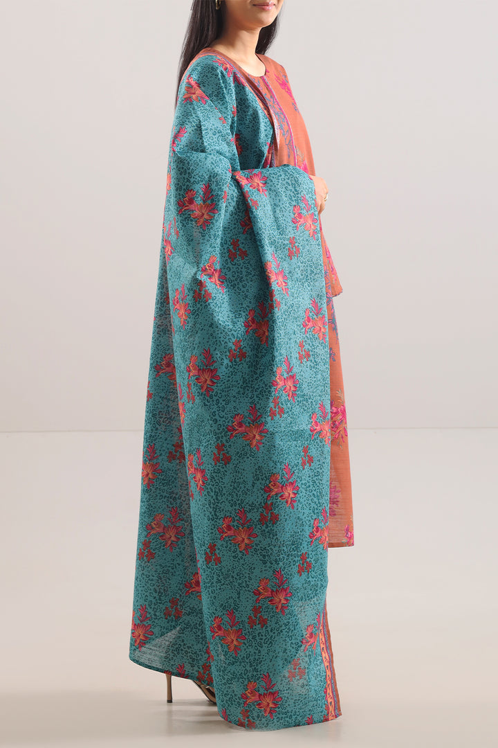 SAYA Unstitched Printed Lawn 3-Piece Features Ultra-Light Lawn Fabric With Elegant Floral Prints On The Shirt Panel, Accompanied By A Matching Dupatta And Coordinated Trouser Panel. Ideal For Daytime Events And Casual Wear, It Offers Tailoring Freedom, Airy Comfort, And Stylish Versatility For Modern Wardrobes.