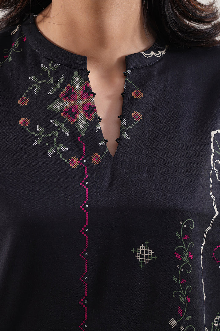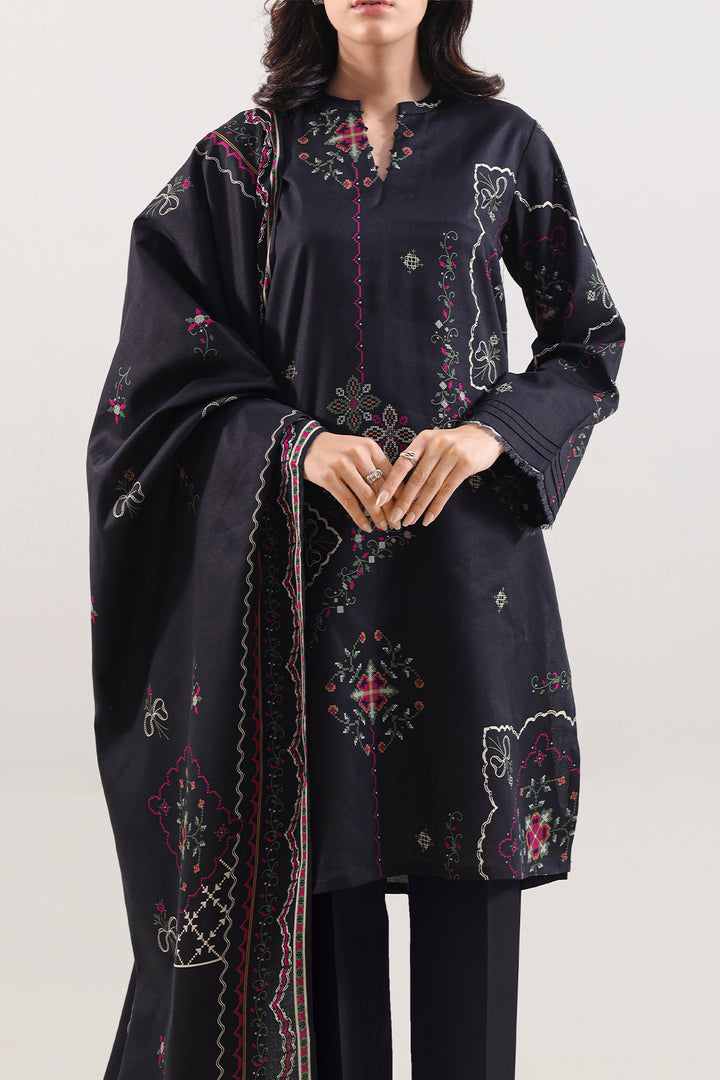 Unstitched Printed Pashmina 3-Piece By SAYA Glows In A Regal Black Tone. Crafted From Luxurious Pashmina Fabric That Offers Softness, Rich Texture, And Elegant Draping, The Set Features A Printed Shirt Panel Designed With Spacious Width For Tailoring Freedom. Accompanied By A Matching Trouser Piece And A Coordinated Printed Dupatta, This Ensemble Delivers Name- worthy Comfort And Style. Ideal For Evening Gatherings, Festive Events, Or Tailored Casual Chic.